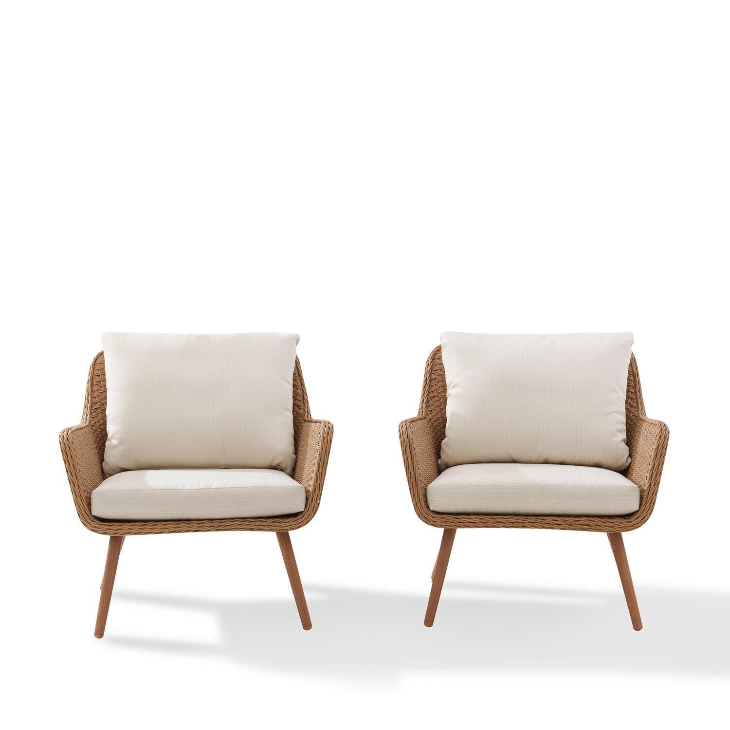 Crosley Landon Wicker Patio Chair in Light Brown and Oatmeal (Set of 2)