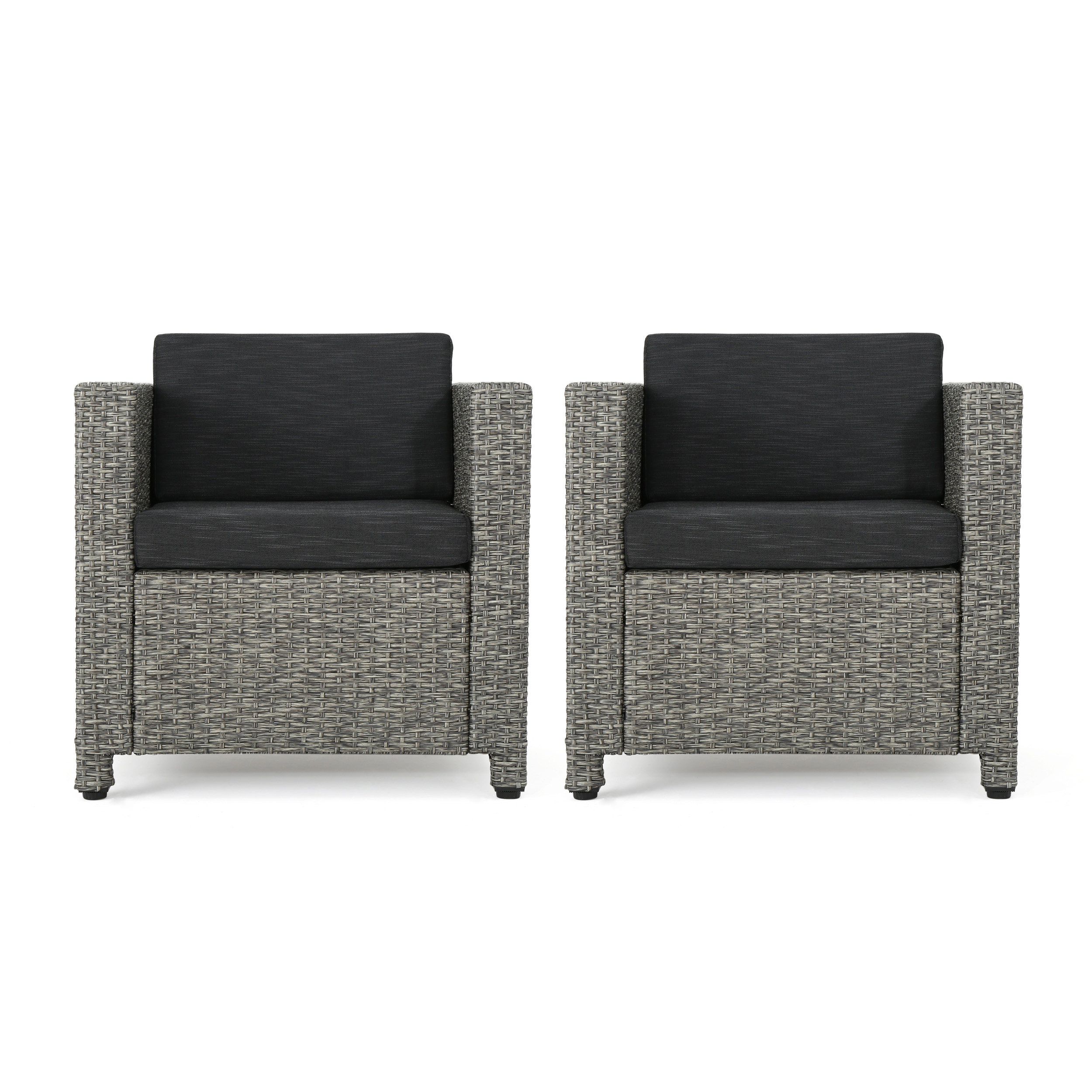 Pueblo Outdoor Wicker Club Chair with Cushions, Set of 2, Mixed Black and Dark Grey