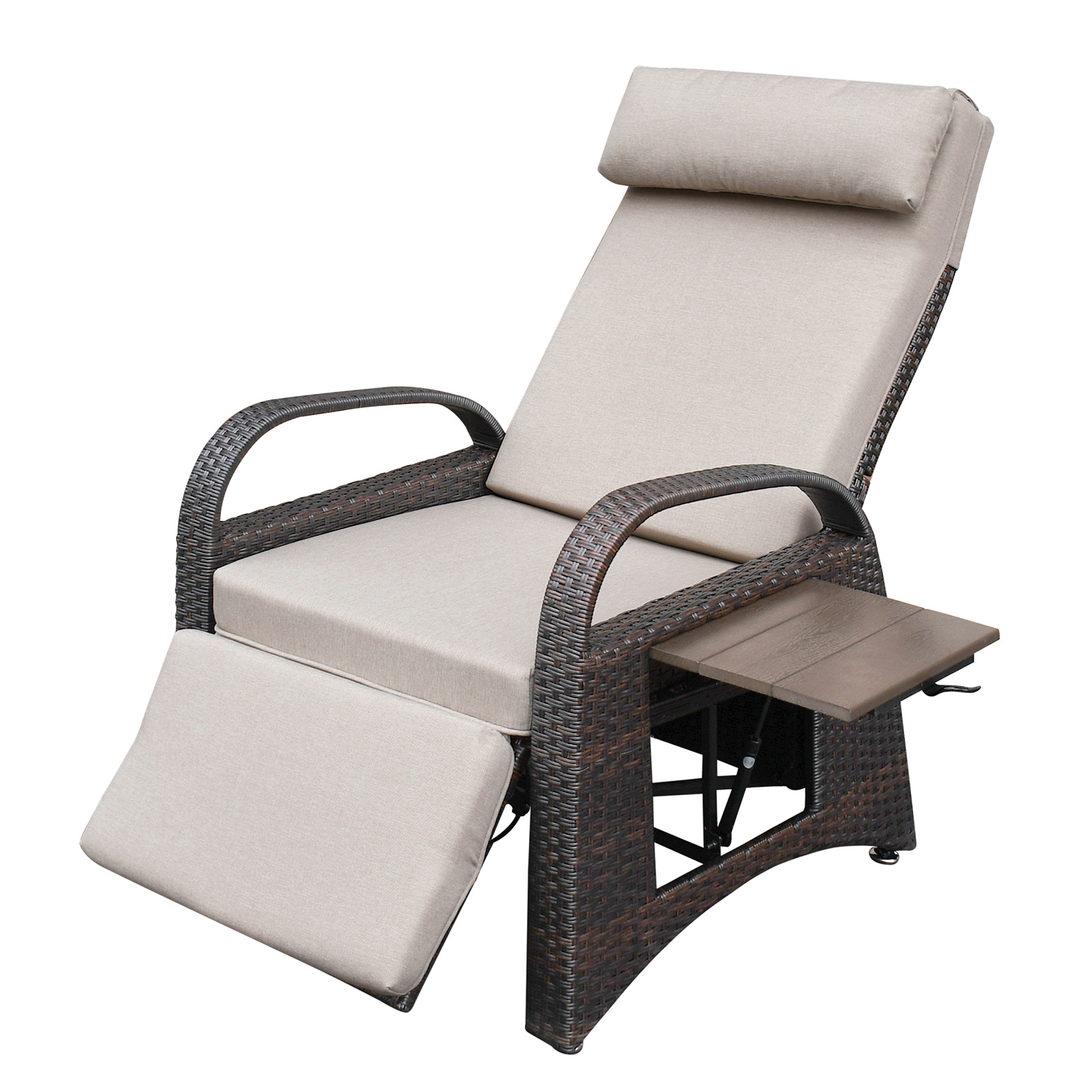 Outdoor Recliner Chair,PE Wicker Adjustable Reclining Lounge Chair and Removable Soft Cushion, with Modern Armchair and Ergonomic for Home, Sunbathing or Relaxation (Khaki)