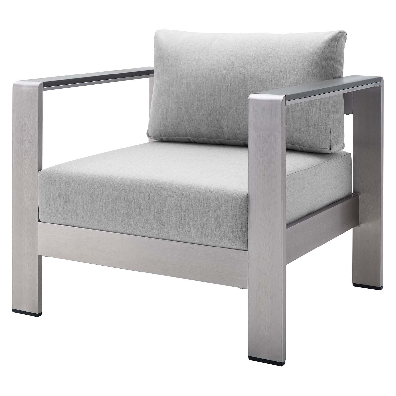 Lounge Chair Armchair, Sunbrella, Fabric, Aluminum, Metal, Steel, Silver Grey Gray, Modern Contemporary Urban Design, Outdoor Patio Balcony Cafe Bistro Garden Furniture Hotel Hospitality
