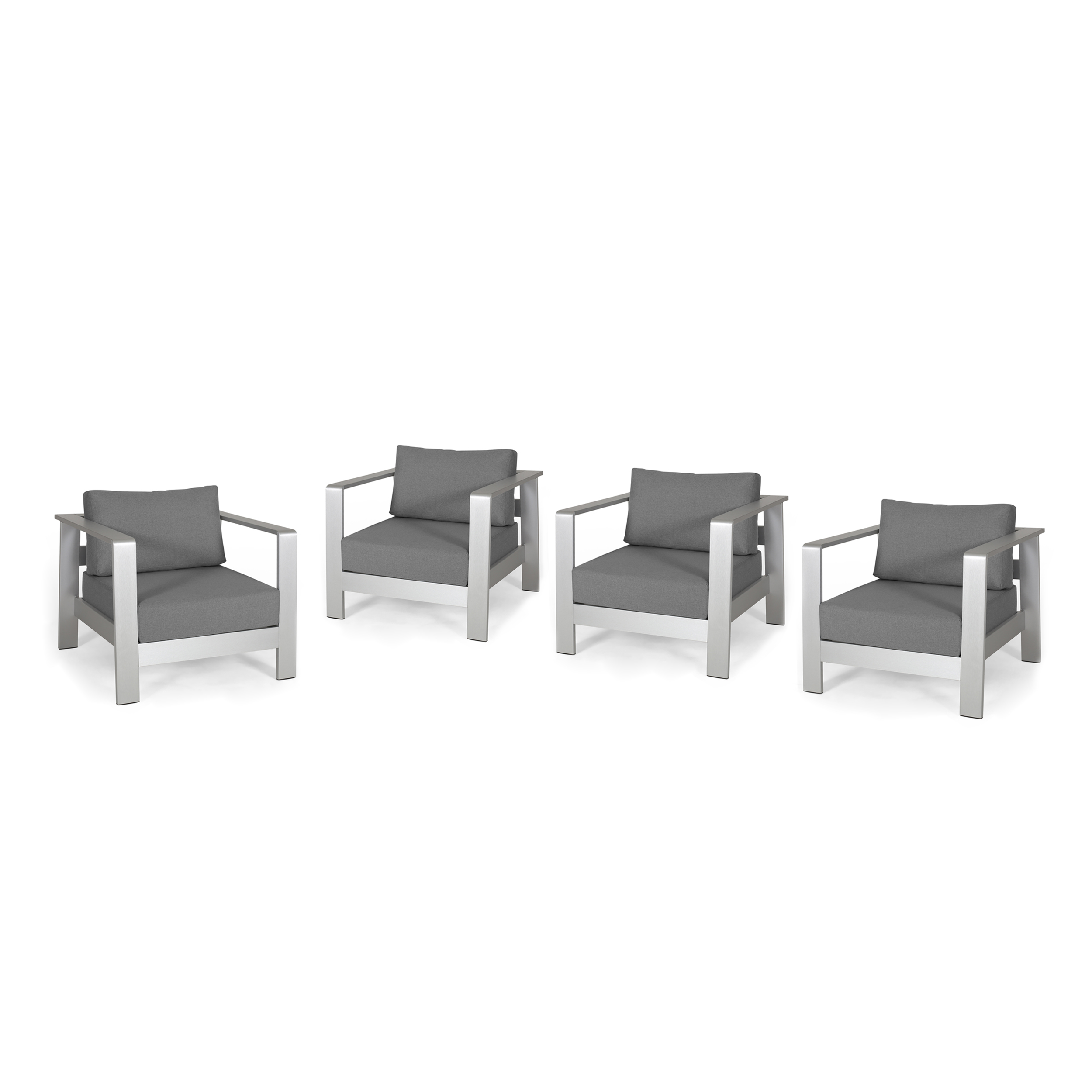 Noble House Bayport Outdoor Aluminum Club Chair in Silver and Gray (Set of 4)