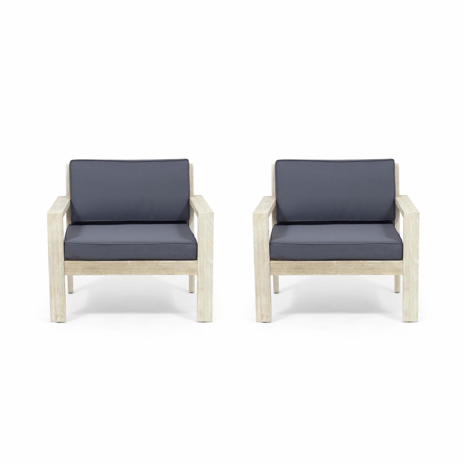 Izreal Outdoor Acacia Wood Club Chairs with Cushions - Set of 2 - Brushed Light Brown and Cream