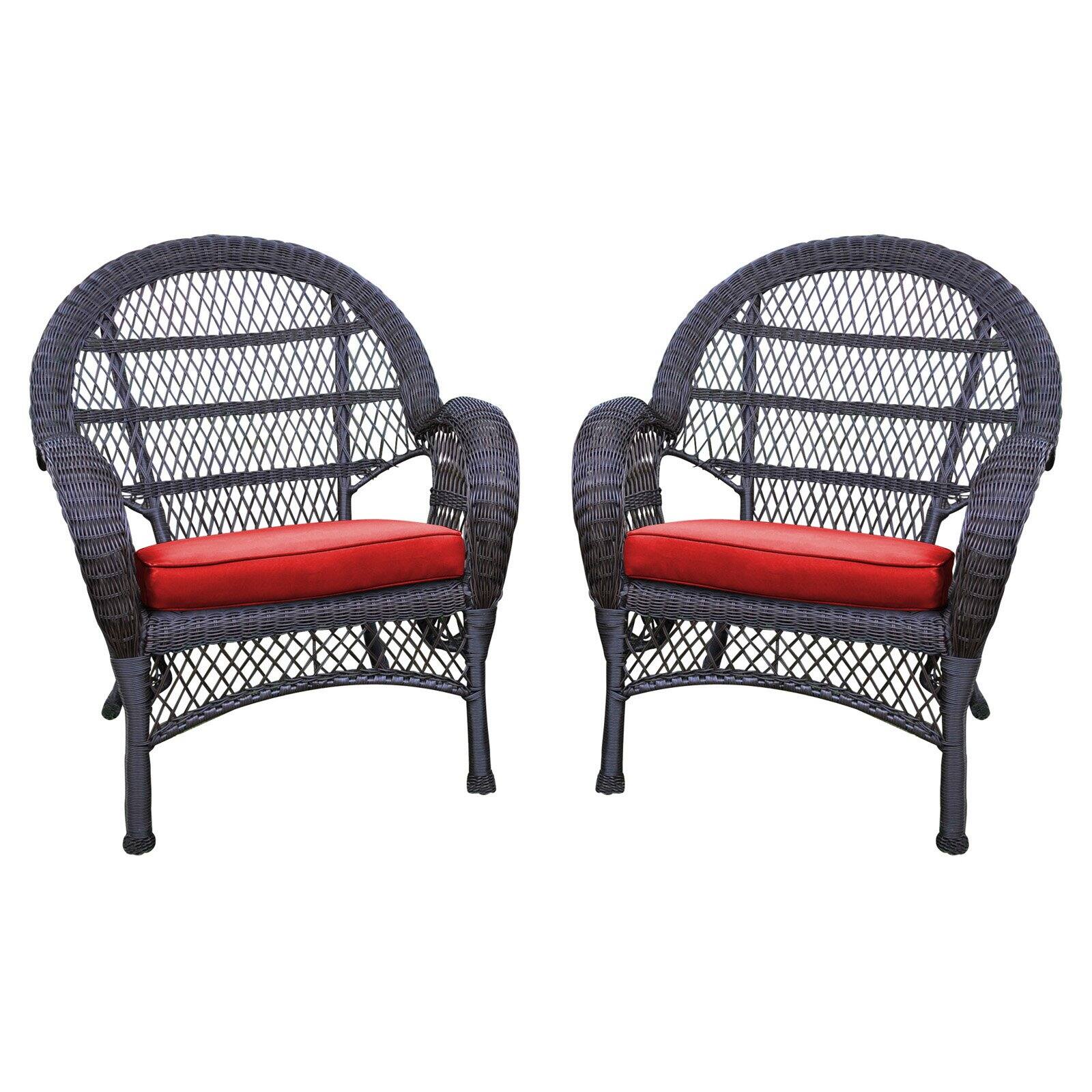 Jeco Wicker Chair in White with Red Cushion (Set of 4)