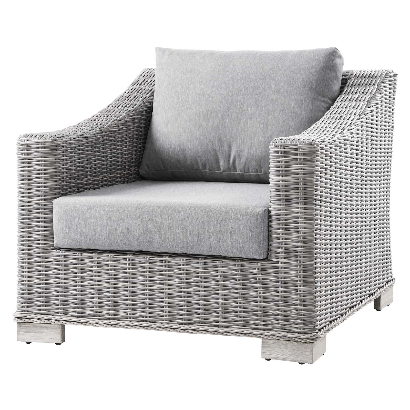 Side Chair Armchair, Rattan, Wicker, Grey Gray, Modern Contemporary Urban Design, Outdoor Patio Balcony Cafe Bistro Garden Furniture Hotel Hospitality