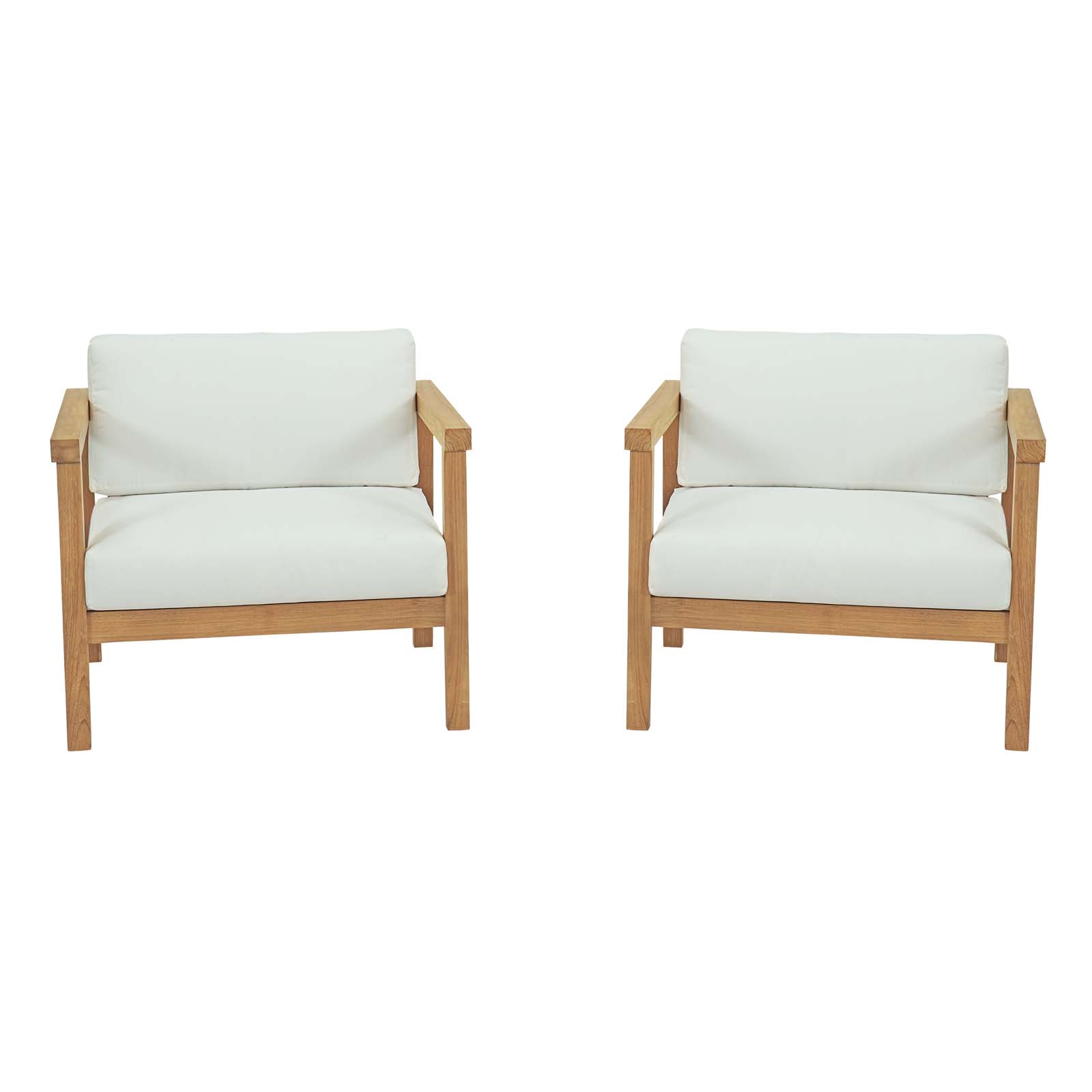 Modern Contemporary Urban Design Outdoor Patio Balcony Garden Furniture Lounge Chair Set, Set of Two, Wood, White Natural