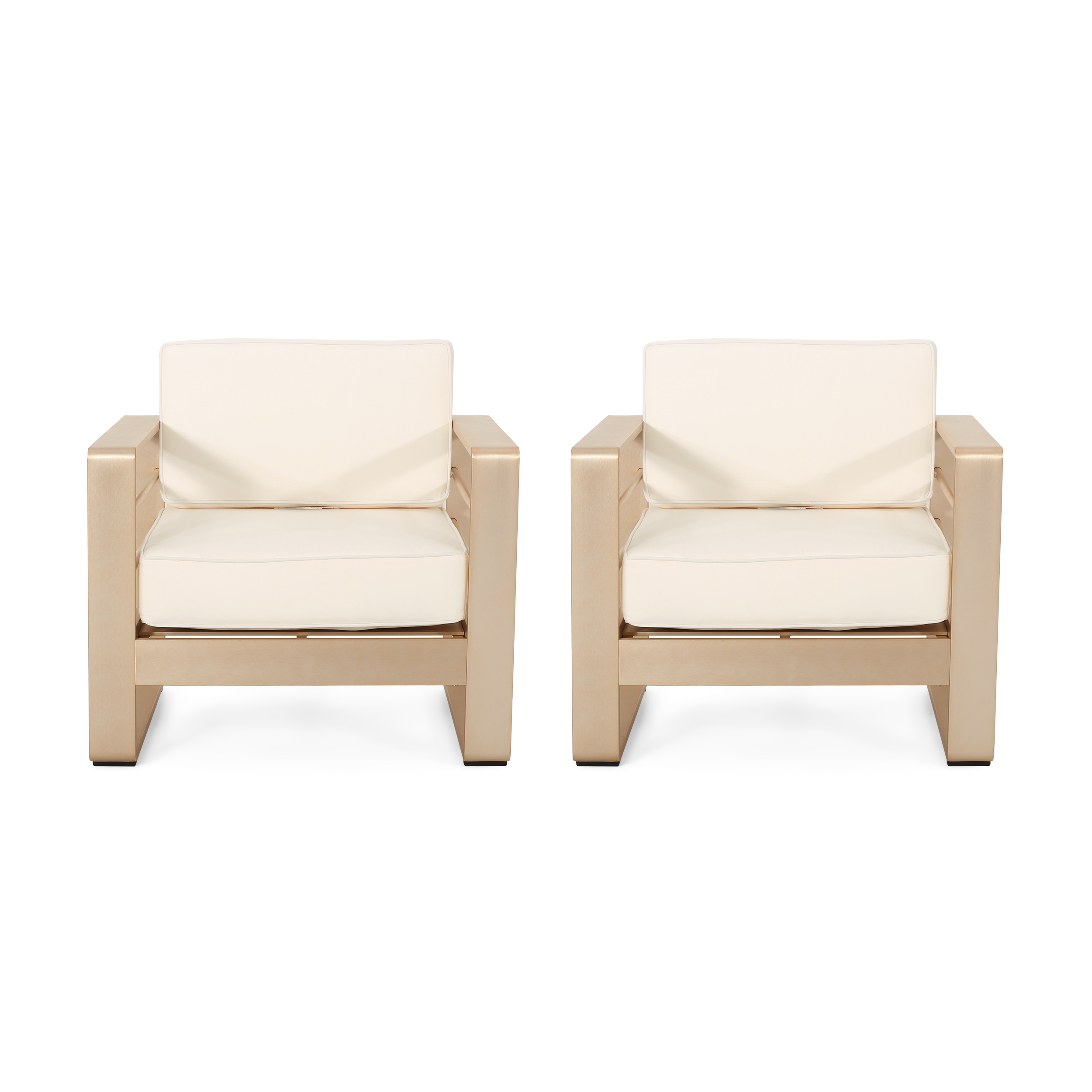 Noble House Maya Bay Aluminum Outdoor Club Chair in White/Gold (Set of 2)