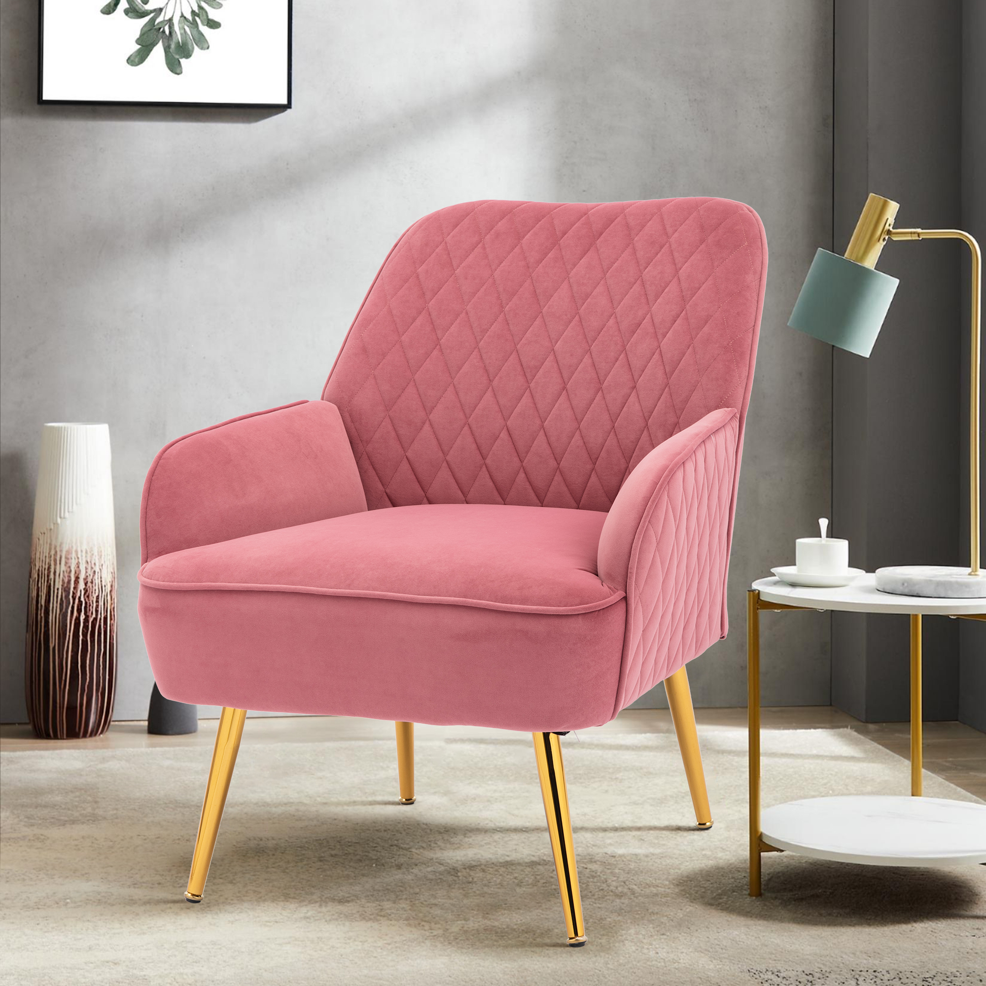 Mobicia Modern Soft Velvet Material Dark Green Ergonomics Accent Chair Living Room Chair Bedroom Chair Home Chair With Gold Legs And Adjustable Legs For Indoor Home Pink