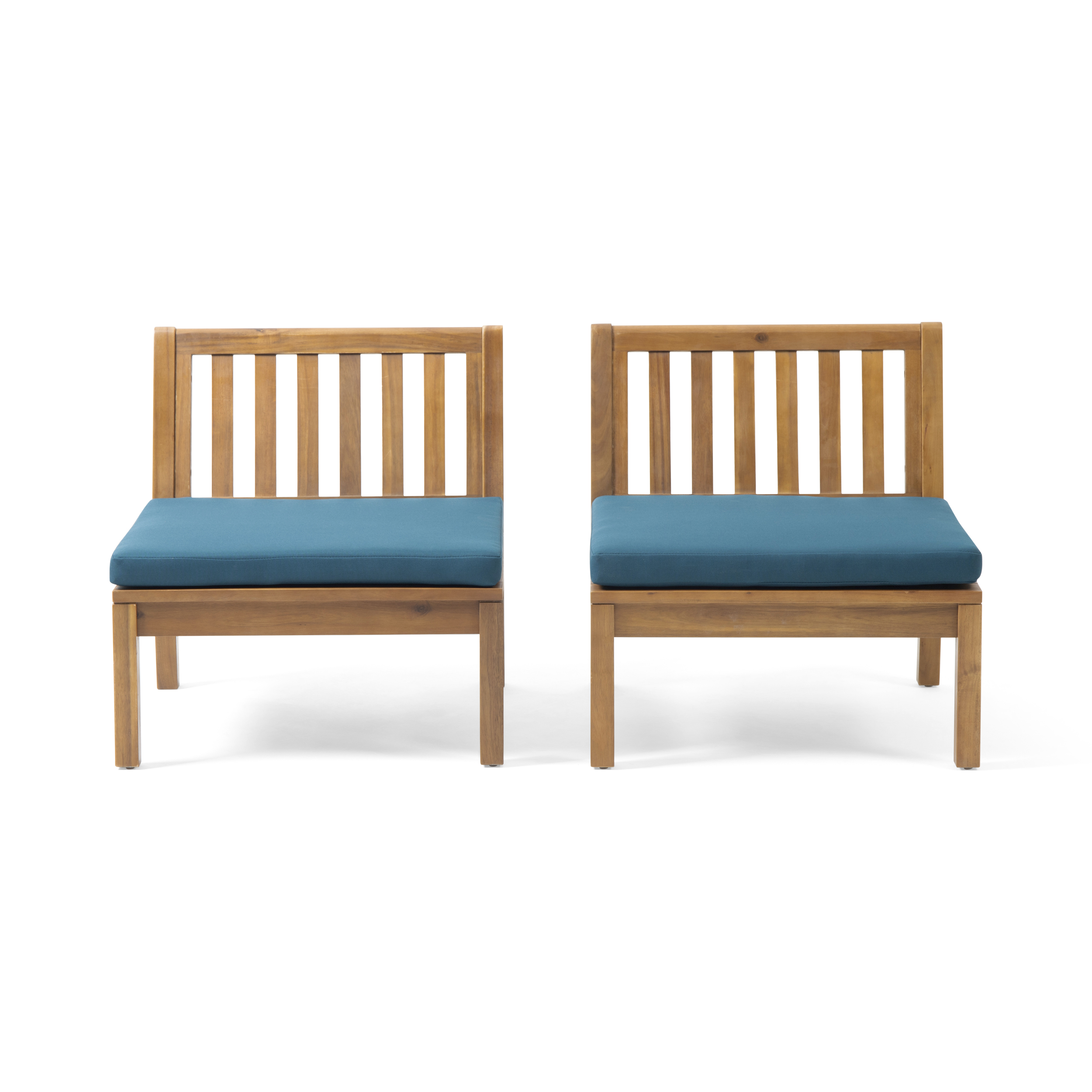 Noble House Caswell Outdoor Acacia Wood Club Chair in Dark Teal (Set of 2)