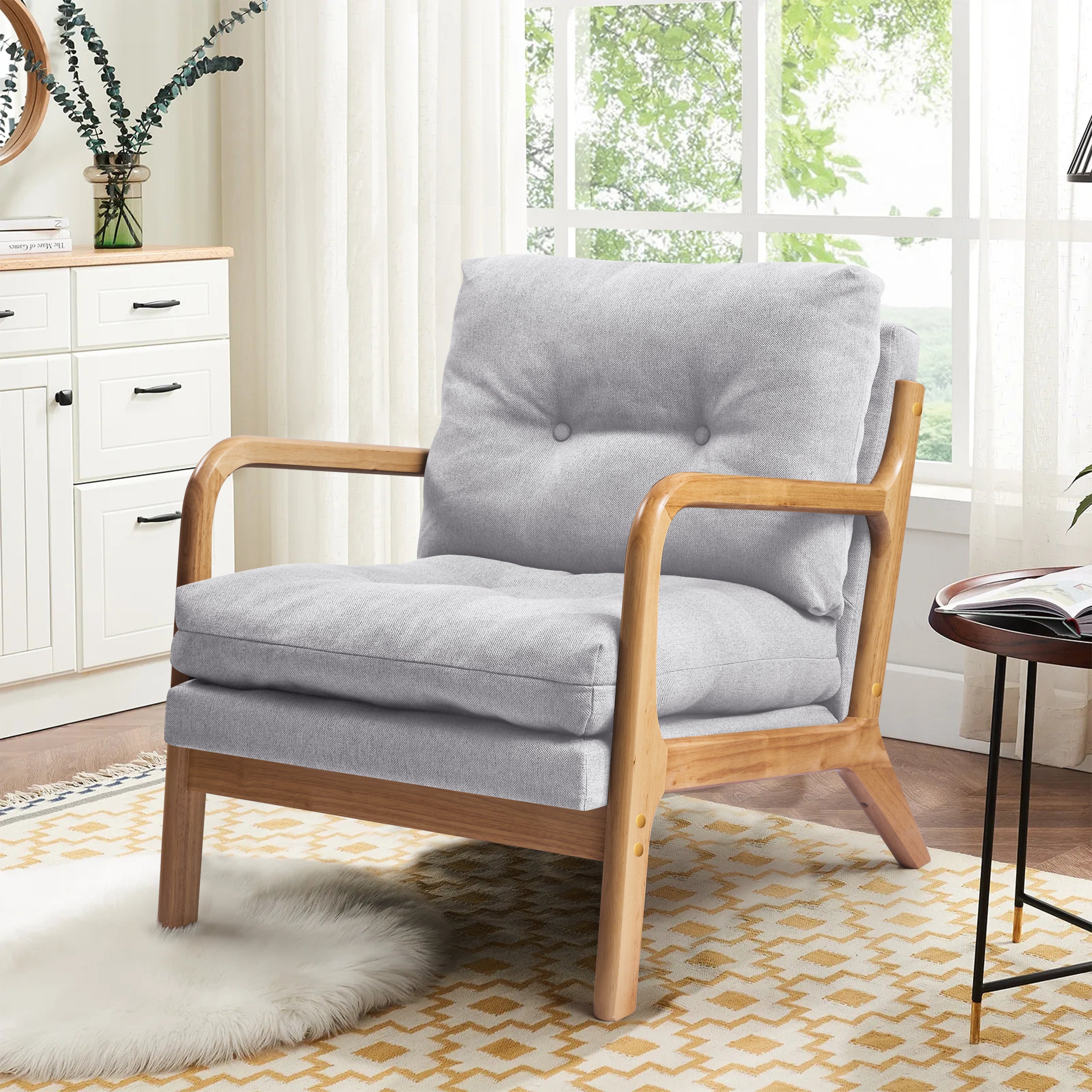 Subrtex Tufted Upholstered Accent Chair (1 Pack, Gray)