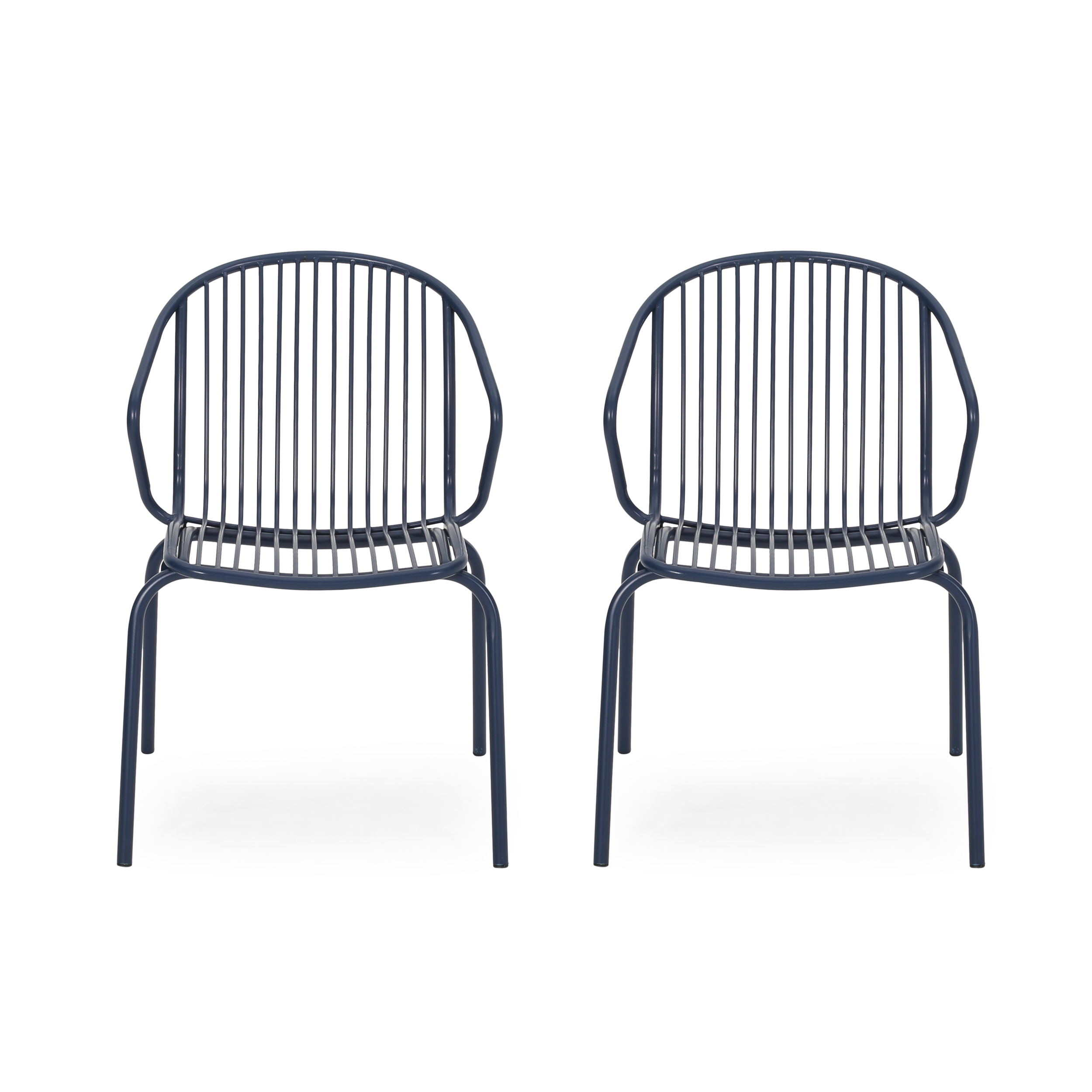 Noble House Boston Outdoor Modern Iron Club Chair in Navy Blue (Set of 2)