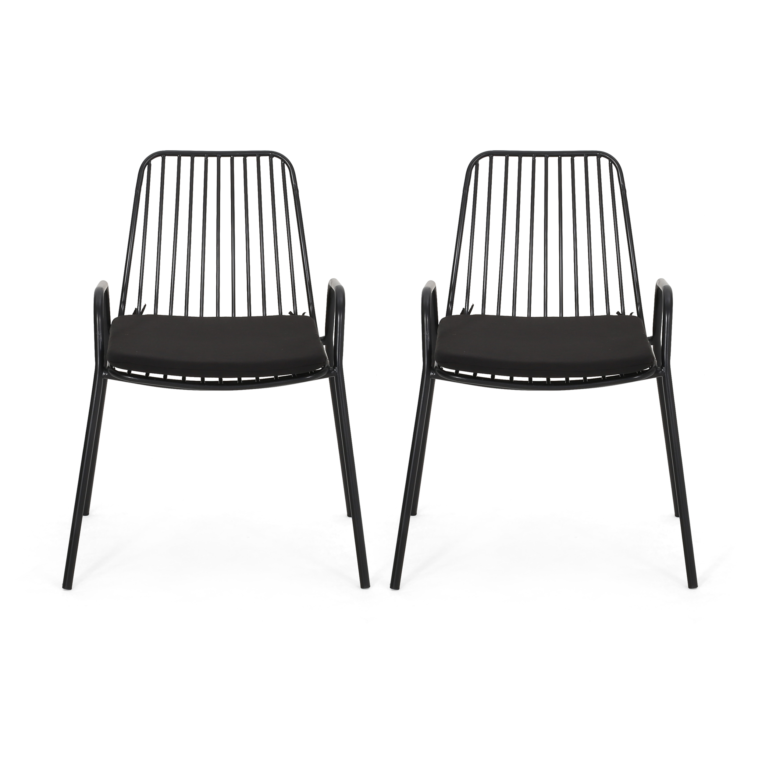 Lovelee Outdoor Modern Iron Club Chair with Cushion, Set of 2, Matte Black and Black