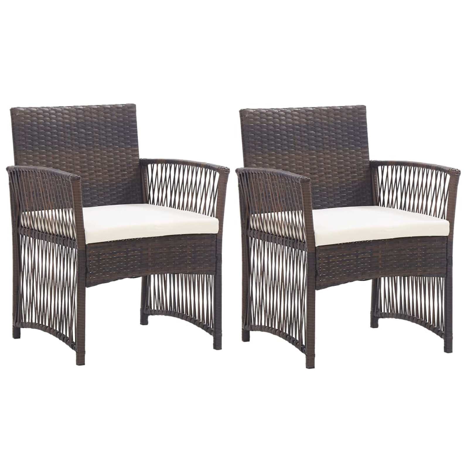 Htovila Patio Armchairs with Cushions 2 pcs Brown Poly Rattan