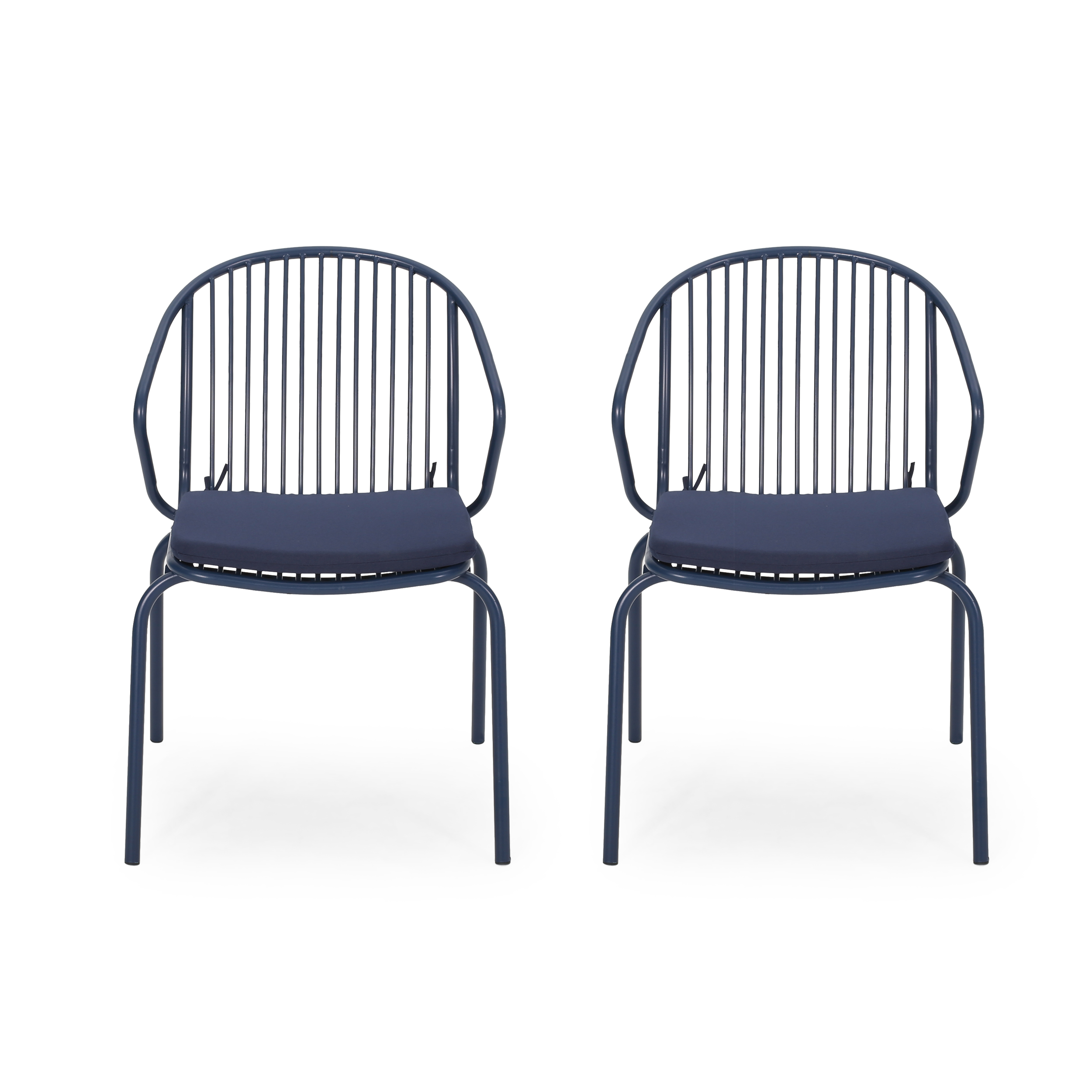 Noble House Boston Outdoor Modern Iron Club Chair in Navy Blue (Set of 2)