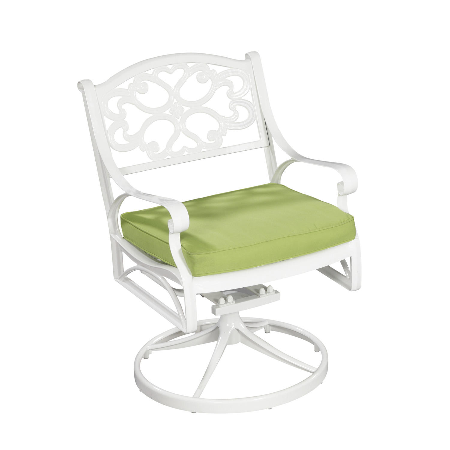 Homestyles Sanibel Cast Aluminum Patio Swivel Dining Chair with Cushion in White