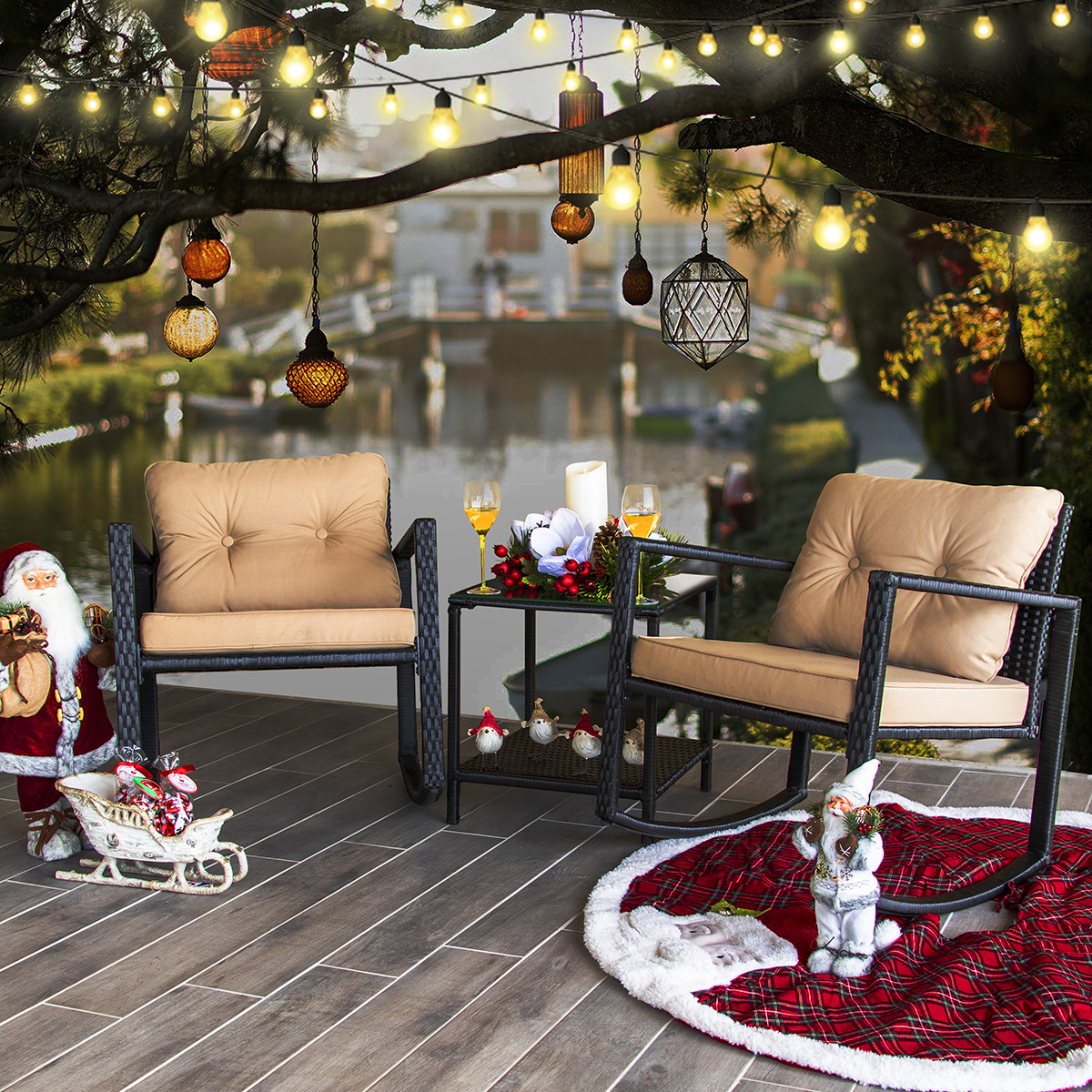 Barton 3pcs Patio Rocker Set Wicker Rocking Cushion Chair w/ Table, Beige