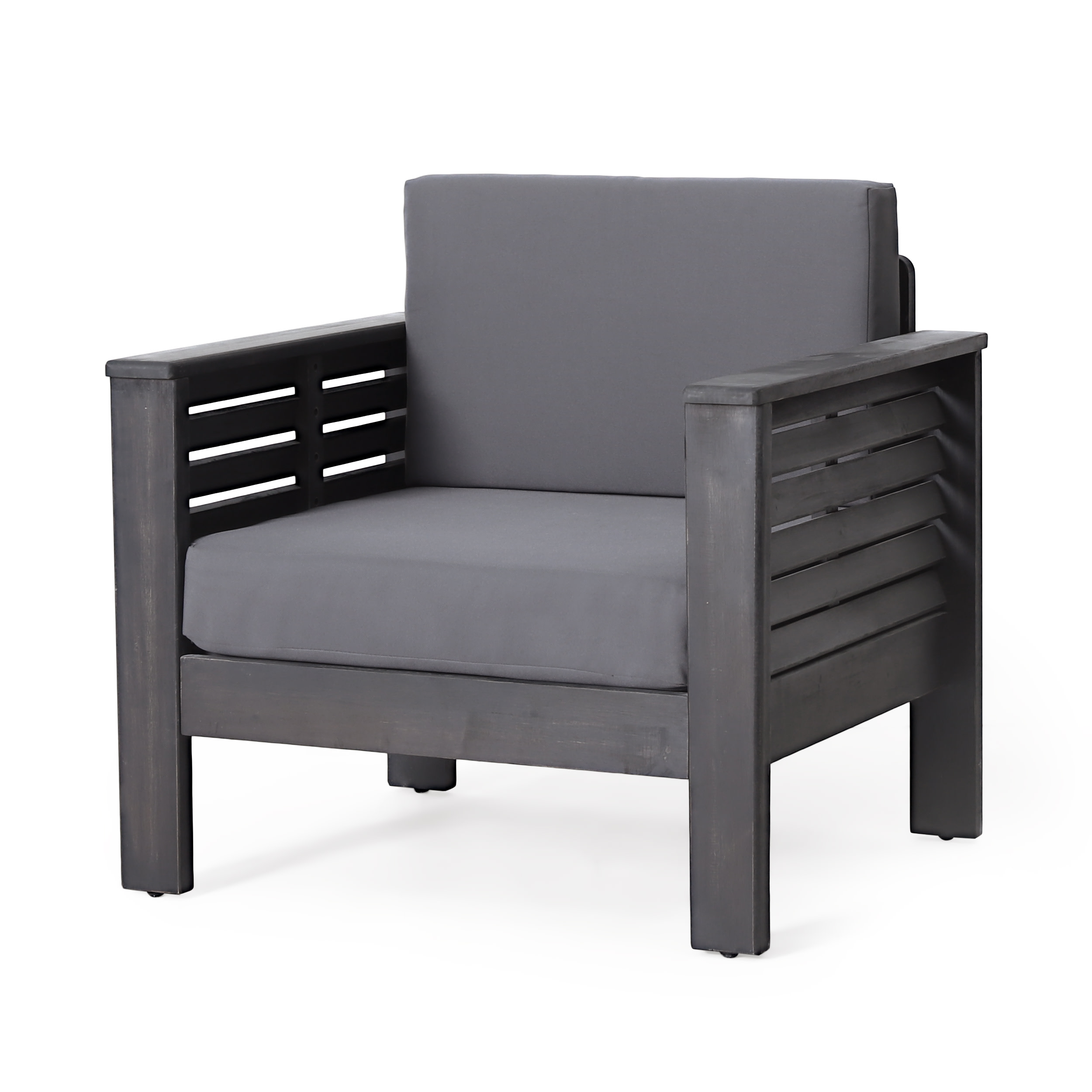 Michelle Acacia Wood Outdoor Club Chairs with Cushions, Dark Gray