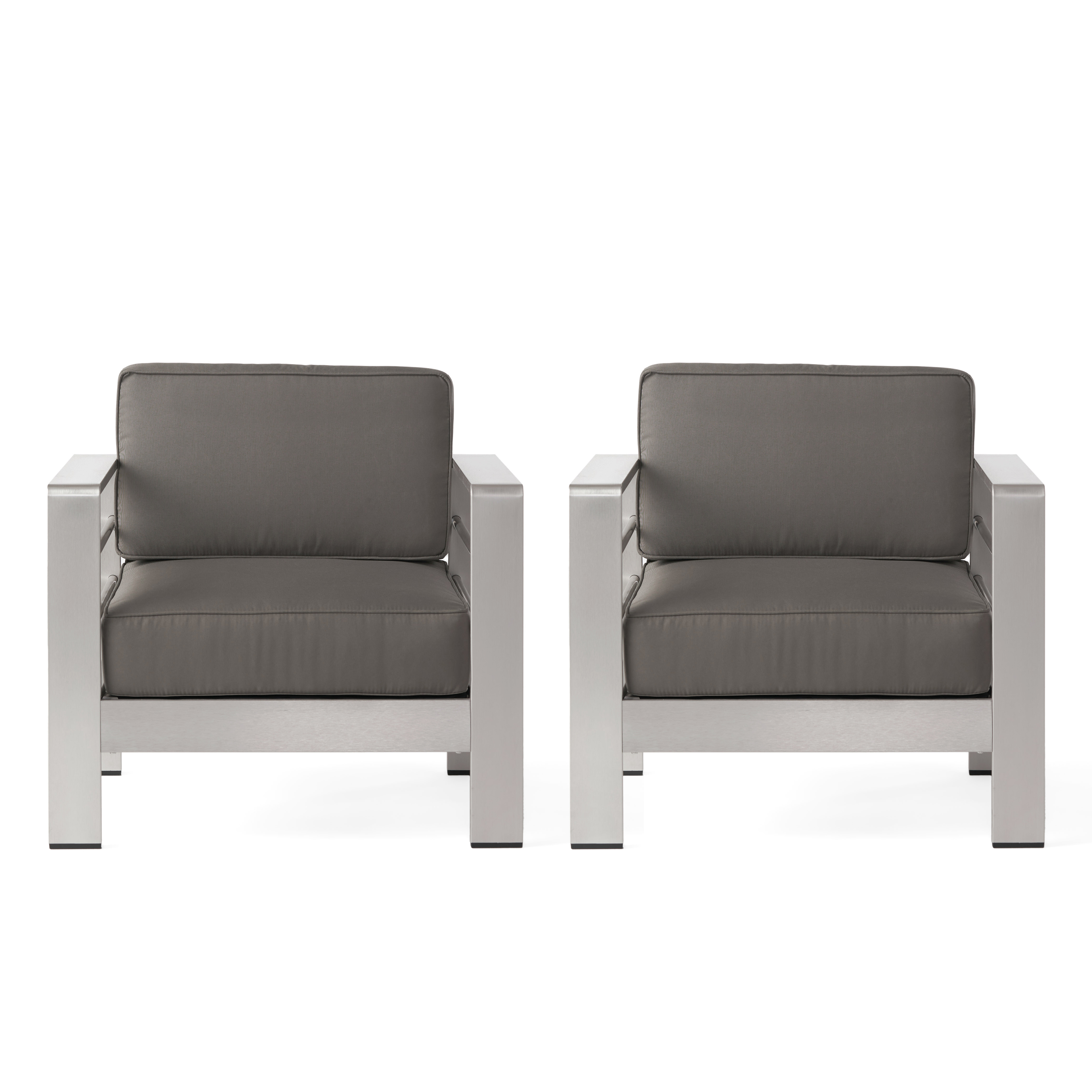GDF Studio Crested Bay Outdoor Aluminum Club Chairs with Cushions, Set of 2, Silver and Gray