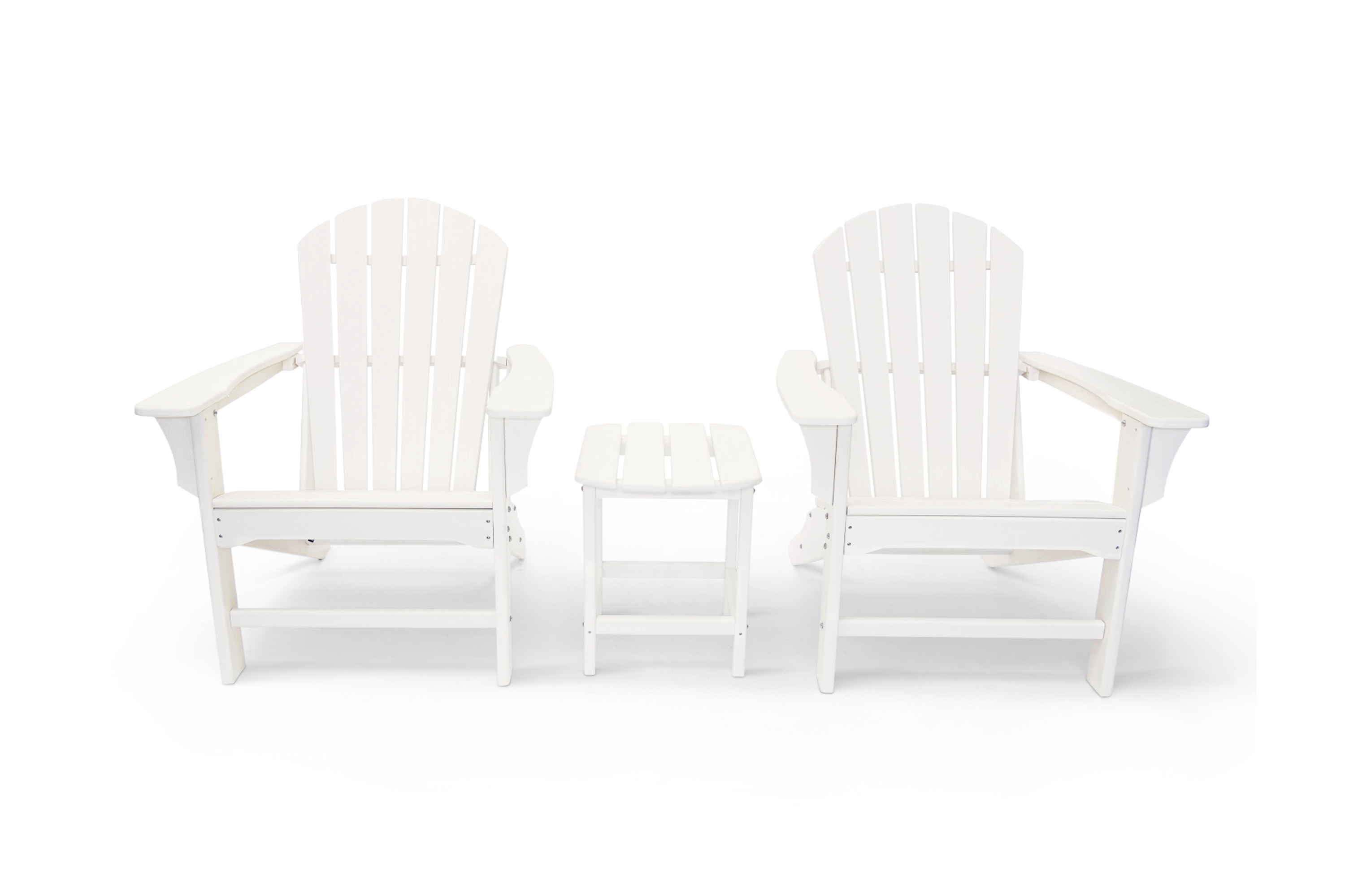 Hampton White Poly Outdoor Patio Adirondack Chairs and Table Set