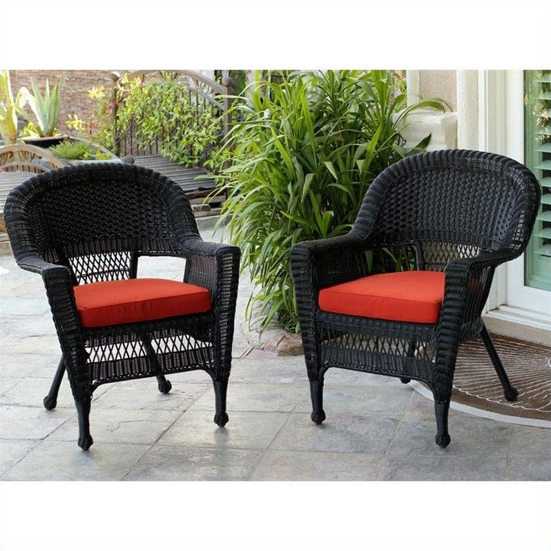 Jeco Wicker Chair in Black with Tan Cushion (Set of 2)