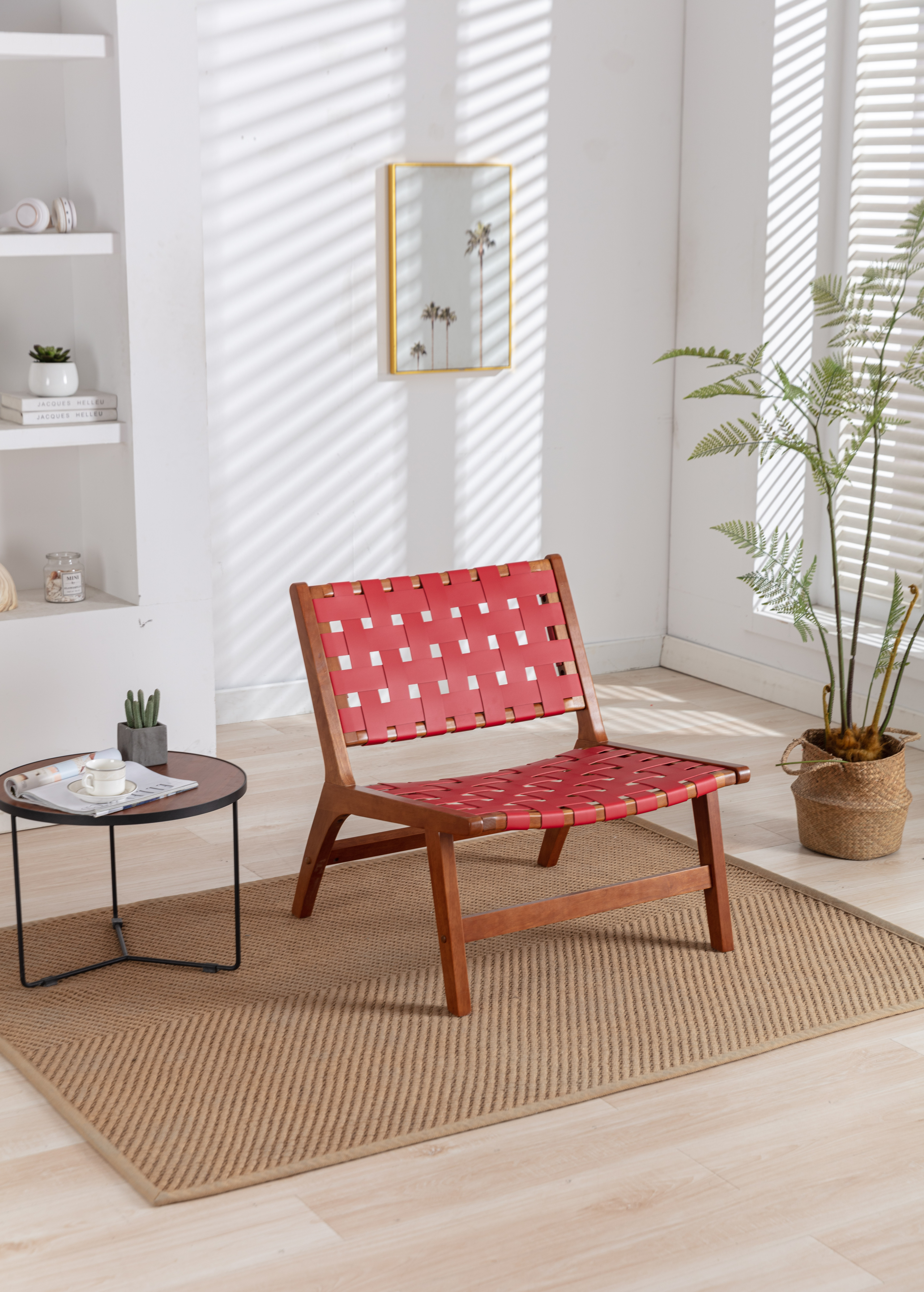 Accent Chair,Woven Leather Chair with Solid Wood Frame,Boho Wood Rattan Accent Chair,Lounge Chair for Living Room,Bedroom, Balcony,Patio