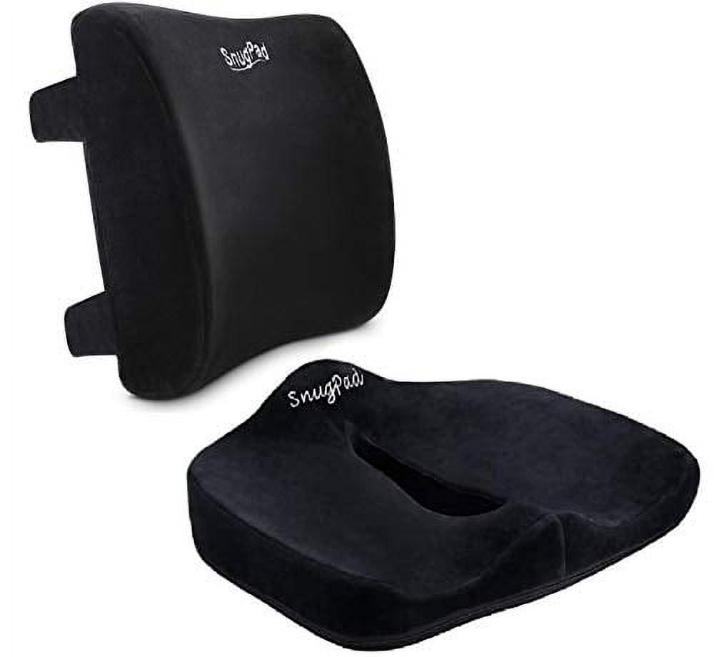SnugPad Memory Foam Lumbar Pillow and Seat Cushion Combo, Ergonomic, Orthopedic, Lower Back Support, Premium Washable Velvet Covers with Non-Slip Bottom, Ideal for Office Chairs and Car Seat