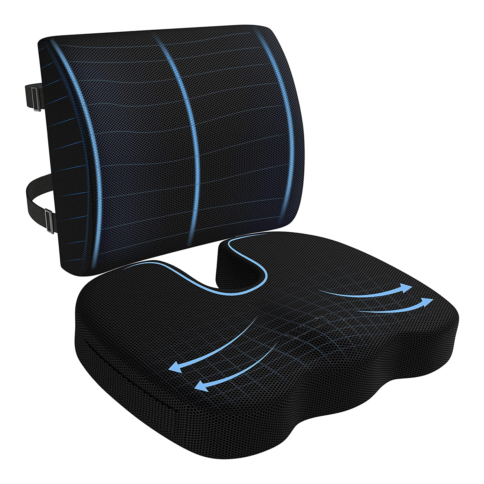 Aptoco Seat Cushion and Lumbar Support Pillow for Office Chair Memory Foam Car Seat Cushion with Washable Cover Ergonomic Desk Chair Cushion for Tailbone, Lower Back Pain, Sciatica Relief, Black