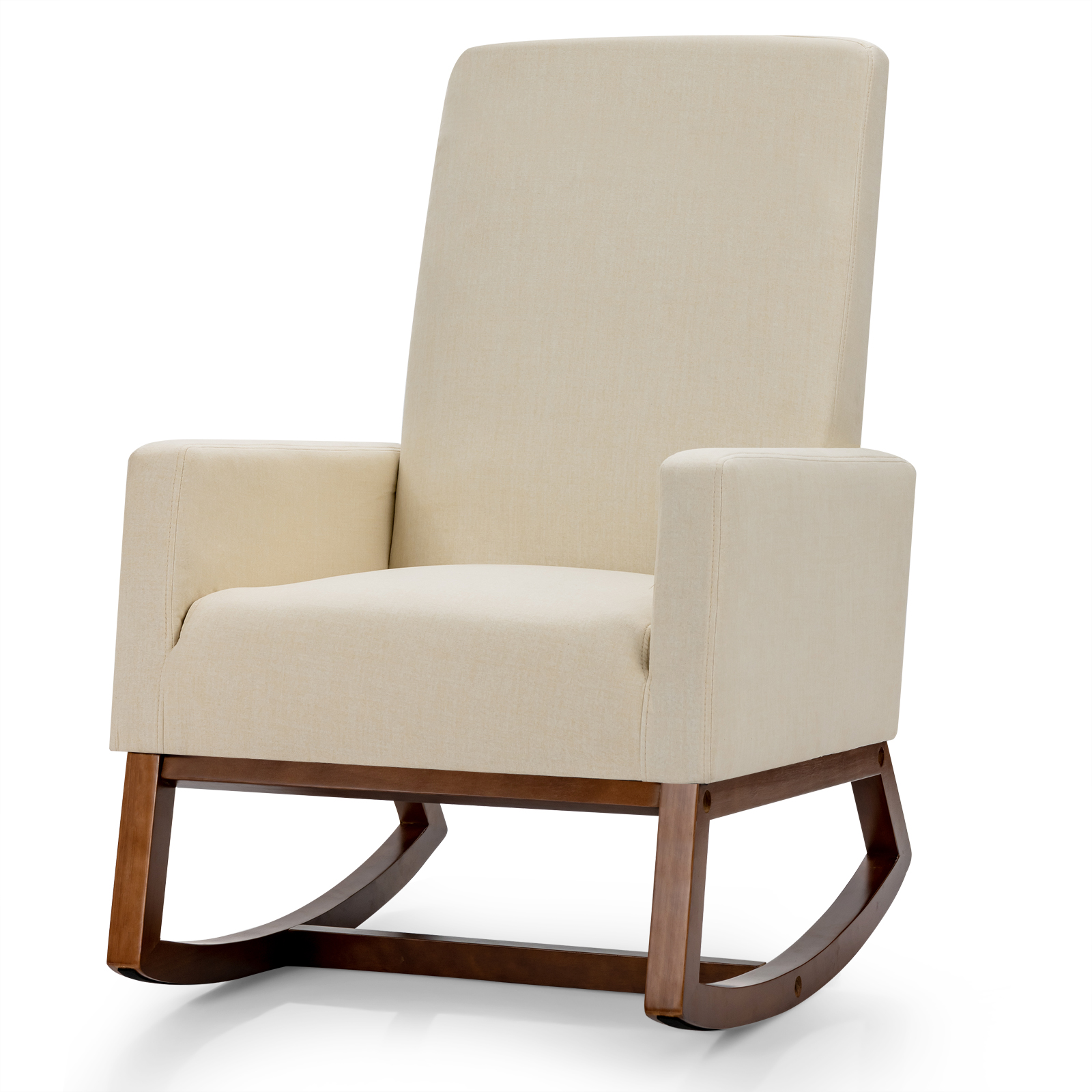 Topbuy Mid Century Rocking Chair Comfortable Rocker Modern High Back Armchair Beige