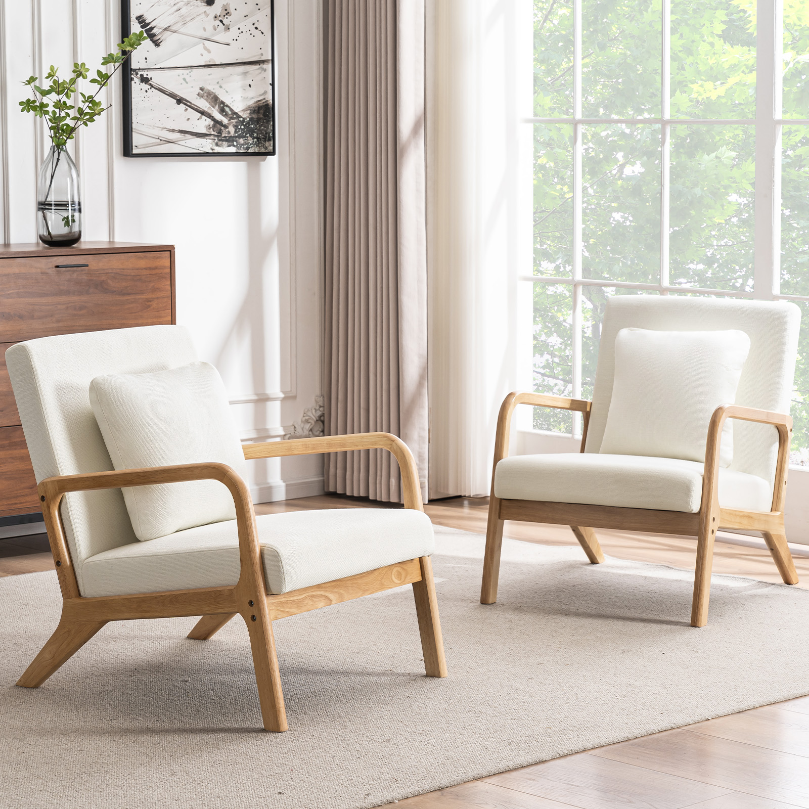 JULY'S SONG Mid Century Modern Accent Chair Set of 2, Linen Upholstered Lounge Chairs for Living Room,Reading Armchair for Bedroom,25.6”W Fabric Comfy Chair,White