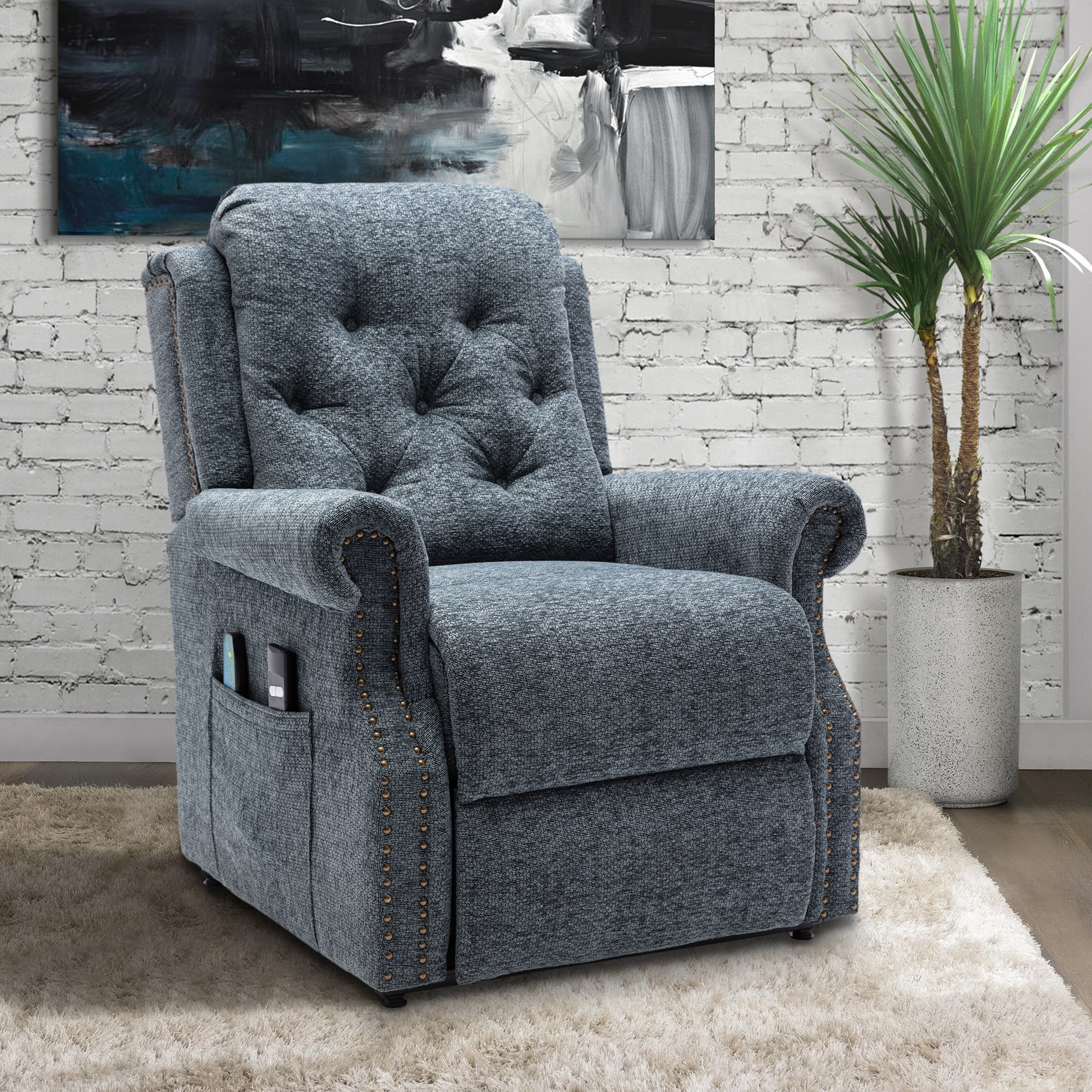 Boyel Living Power Lift Recliner Massage Chair Home Adjustable Theater Seat Living Room Reclining Chair,Side Pockets,Chenille Knit Fabric Blue