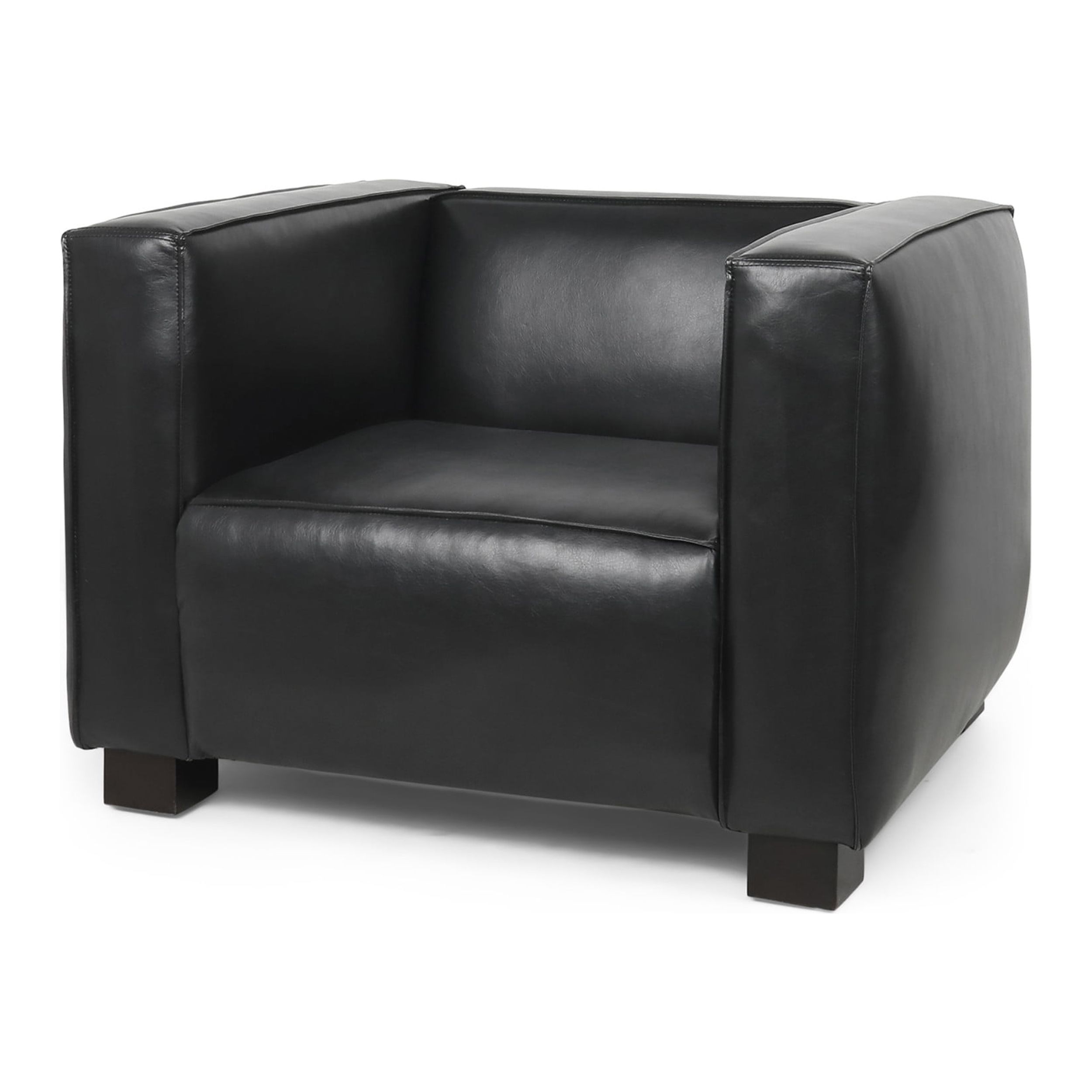 Noble House Denison Faux Leather Club Chair, Midnight Black and Dark Walnut