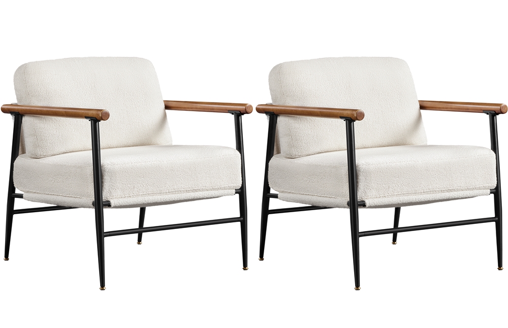 Topeakmart Modern Upholstered Boucle Accent Chair with Metal Frame for Living Room, Set of 2, Ivory