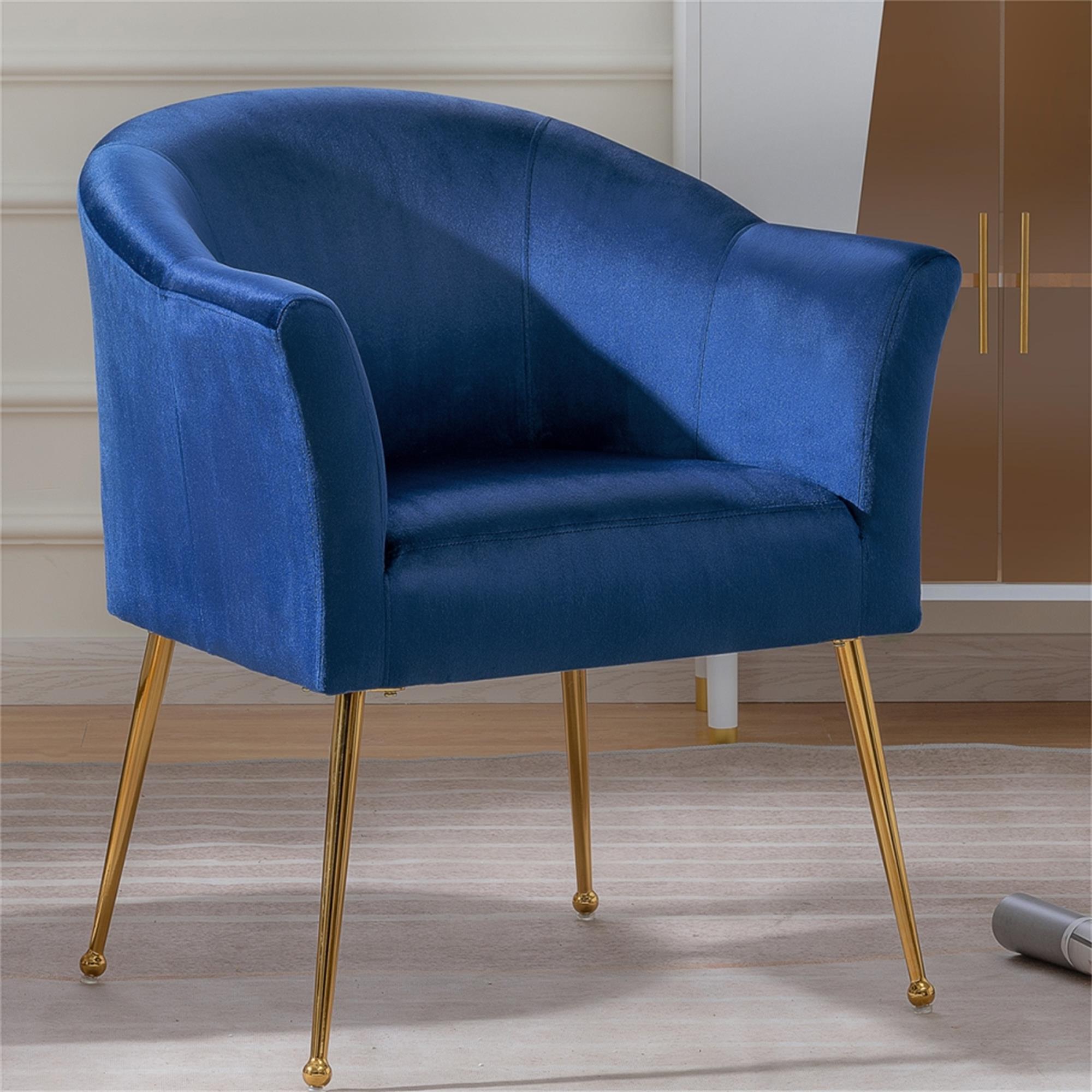 YYAo Velvet Accent Chair, Upholstered Comfy Armchair with Metal Legs for Bedroom, Living Room, Blue