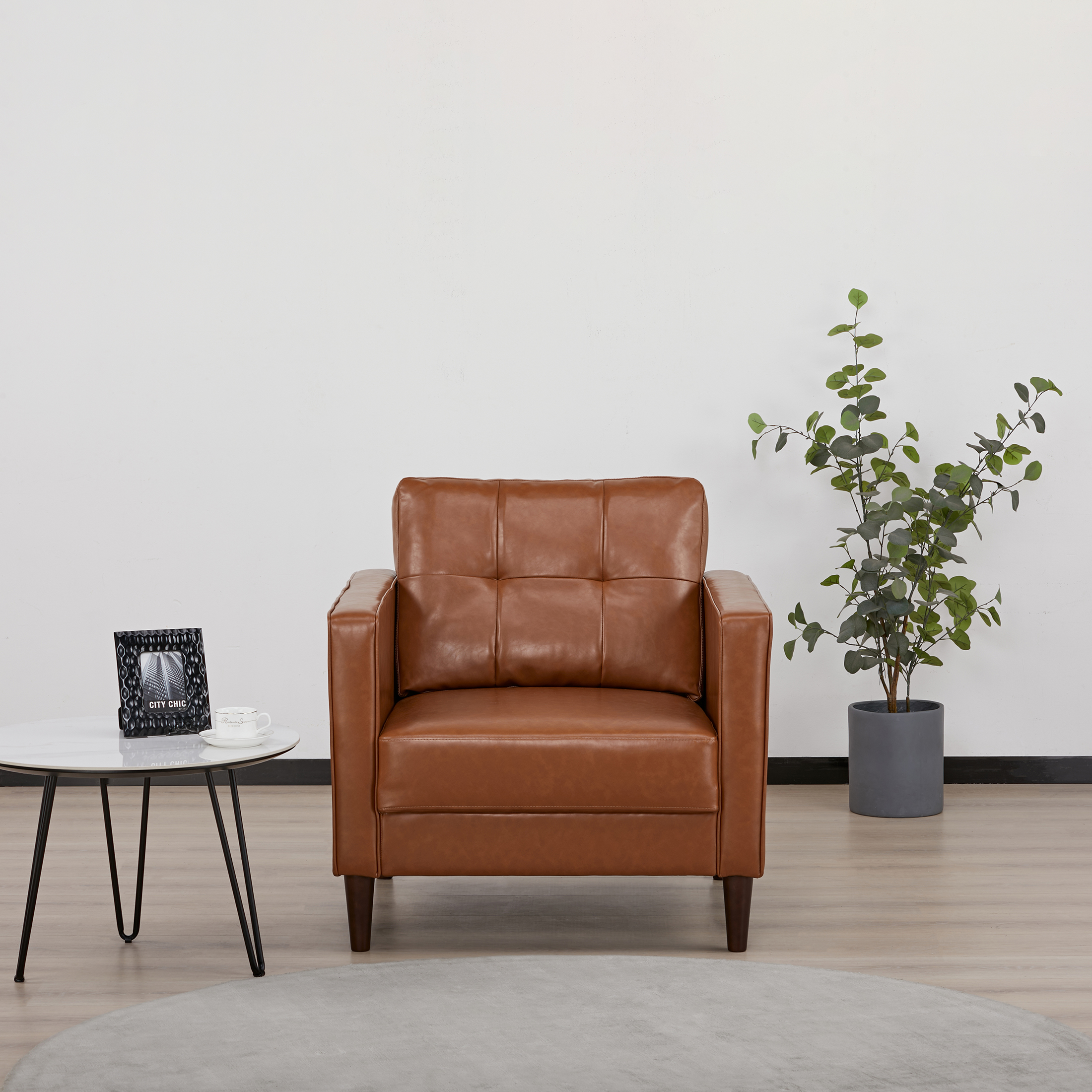 A&D Home Anza Tufted Faux Leather Armchair, Cognac Brown