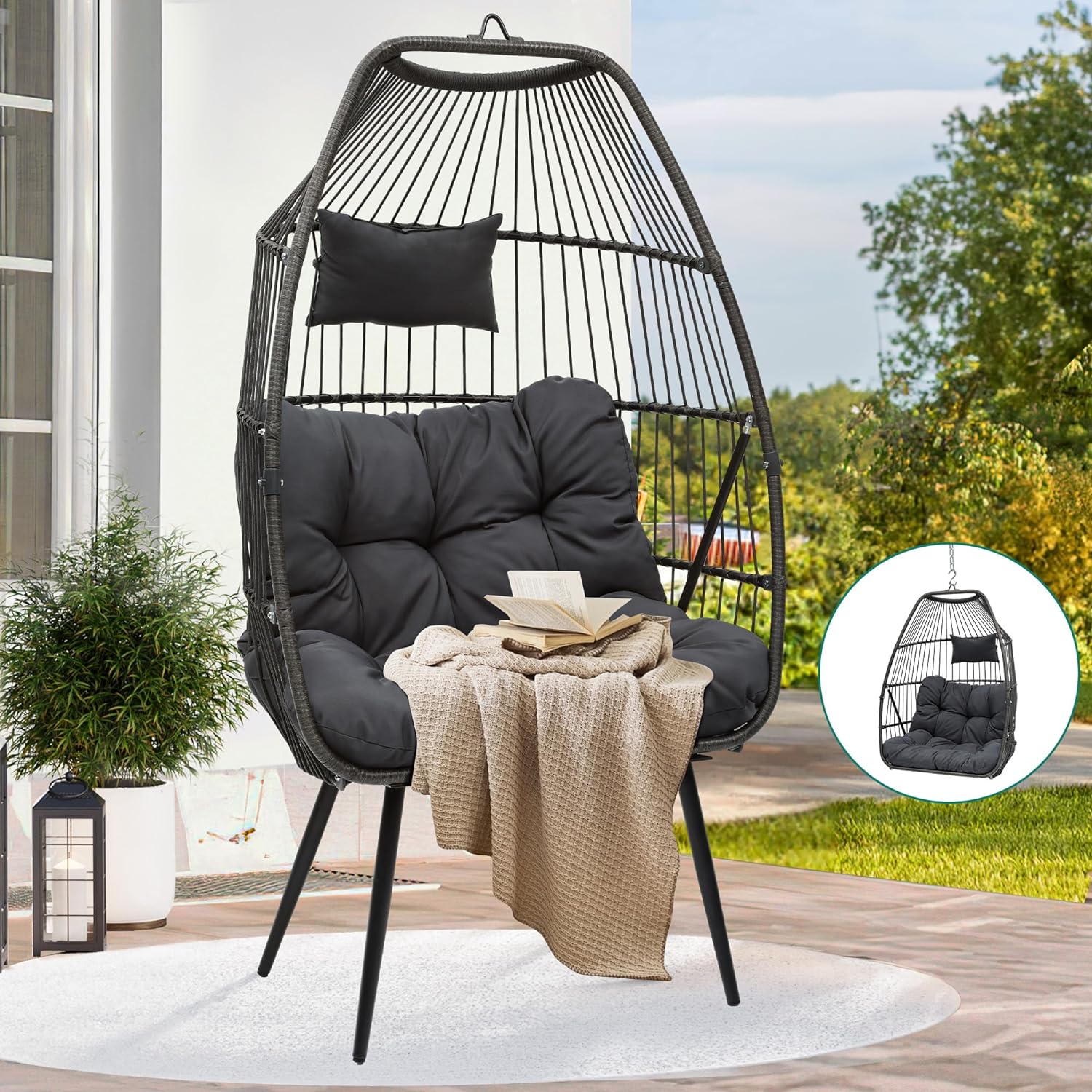 Dextrus Convertible Egg Chairs with Stand - Dual-Purpose Egg Swing Chairs - Versatile Seating for Indoor and Outdoor Use
