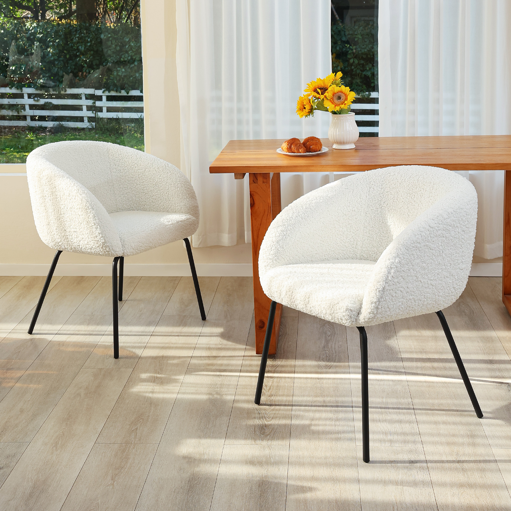 Zesthouse Teddy Sherpa Dining Chairs Set of 2, Modern Boucle Fabric Barrel Accent Armchairs, Leisure Chairs for Living Dining Room, White