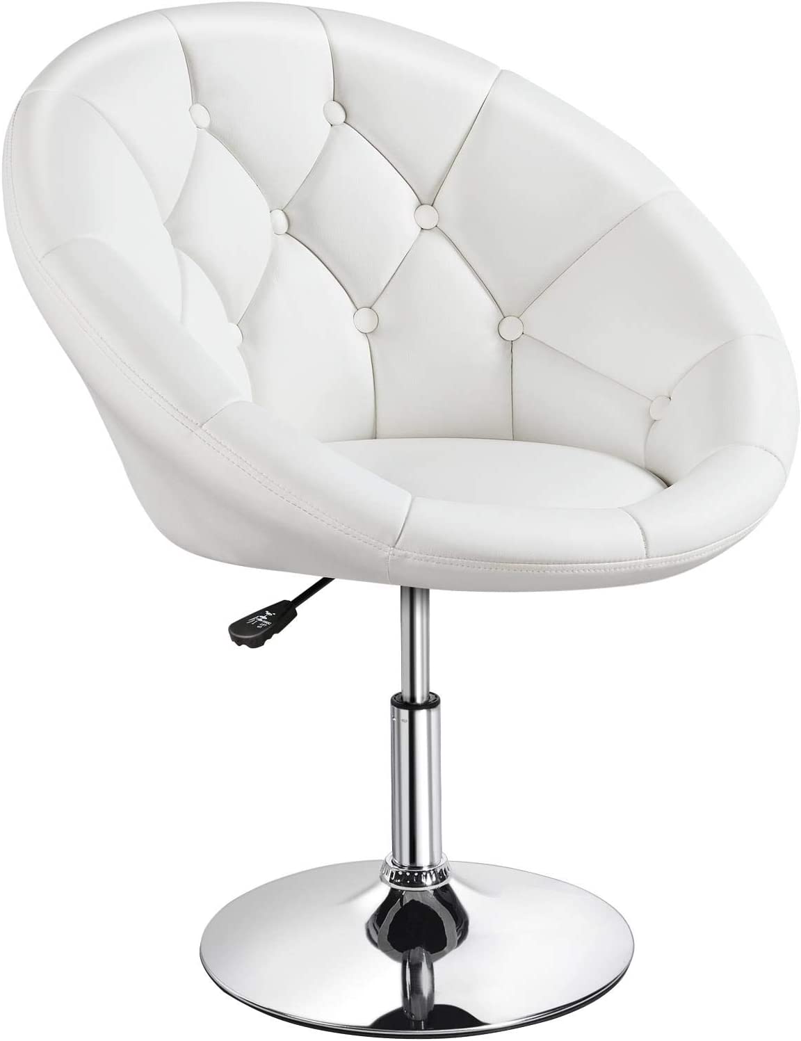 Vanity Chair Makeup Chair Swivel Accent Chair Height Adjustable Round Back Tilt Chair with Chrome Frame for Makeup Room, Living Room, White