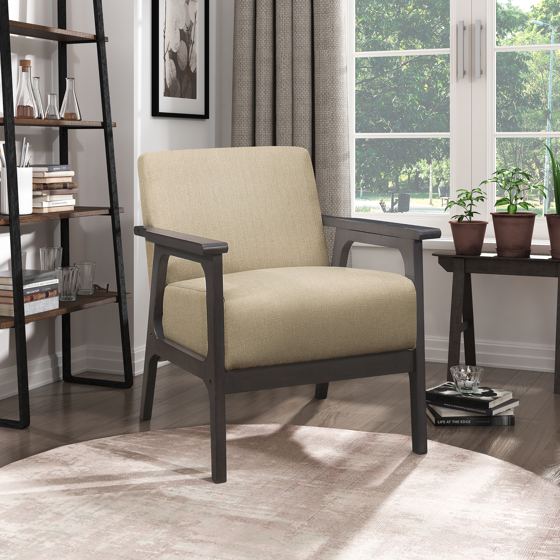 Ktaxon Mid Century Modern Accent Chair, Linen Fabric Armchair with Solid Wood Frame Beige