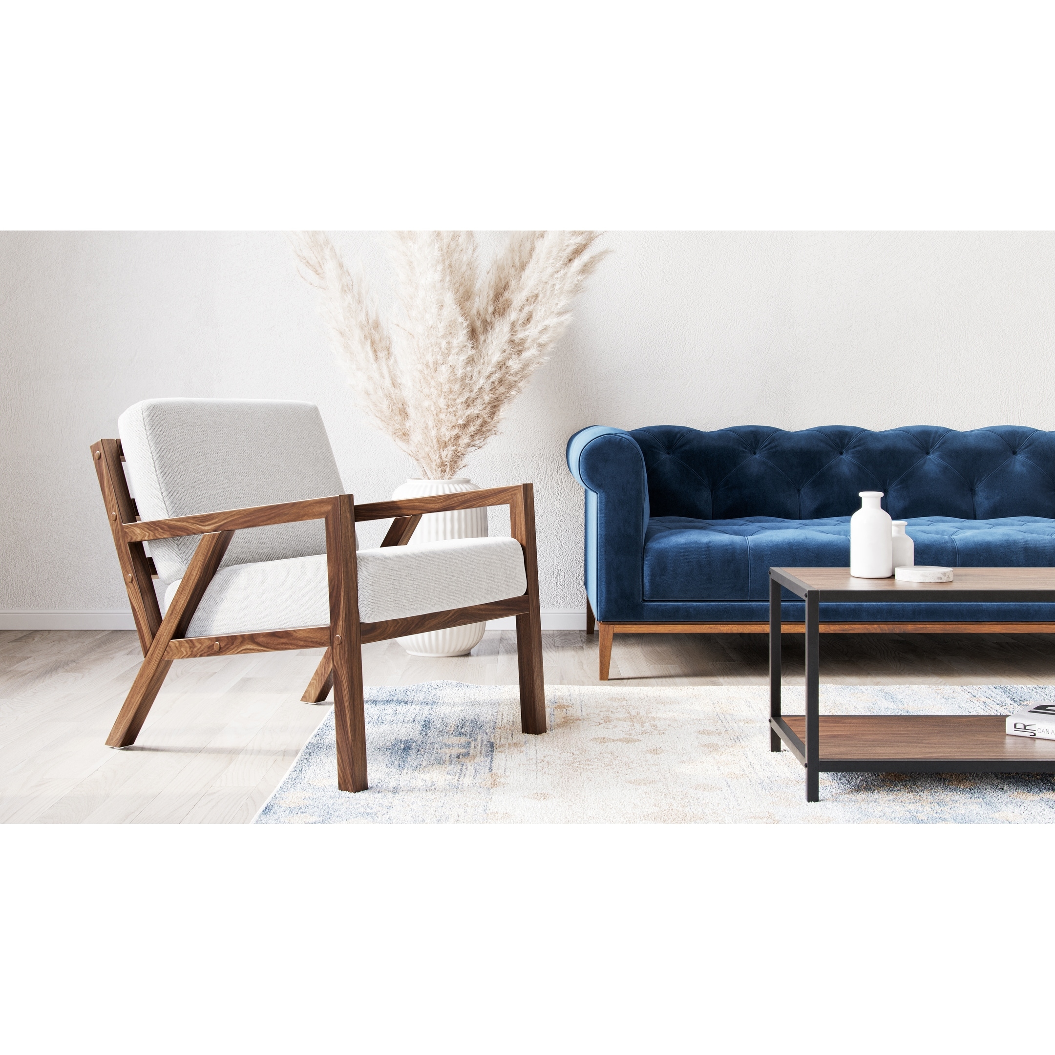 Flats & Castles Wilson Mid-Century Wood & Fabric Accent Chair in Walnut