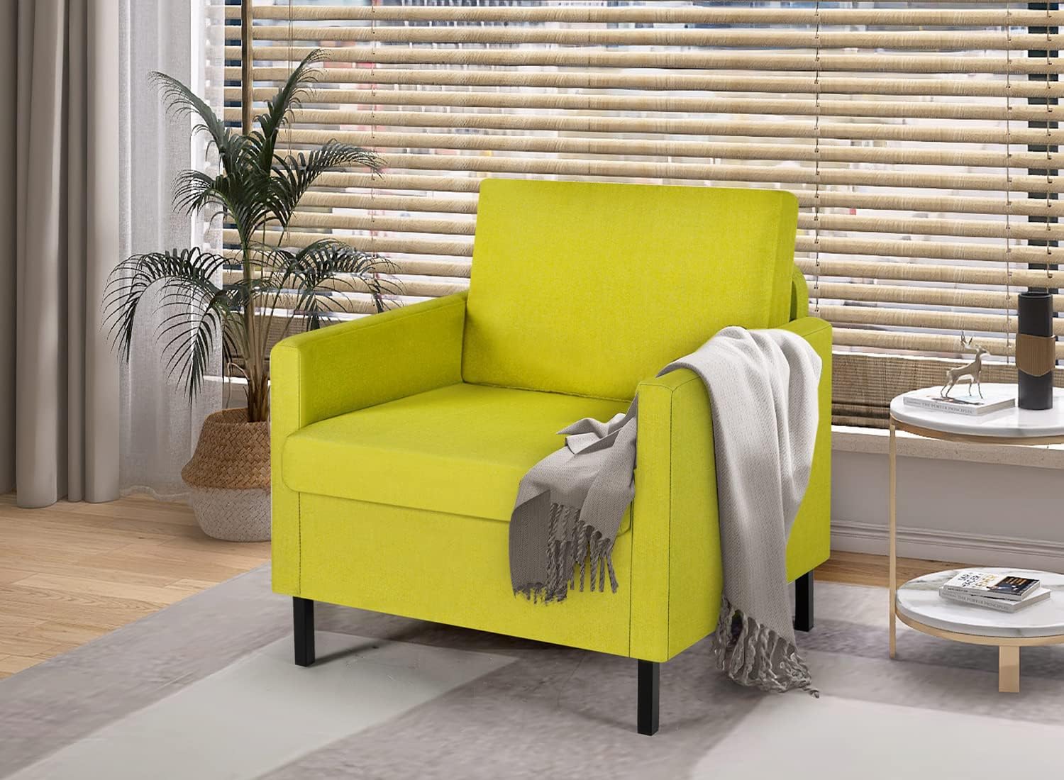Ktaxon Mid Century Modern Accent Chair, Linen Fabric Armchair with Solid Wood Frame Beige