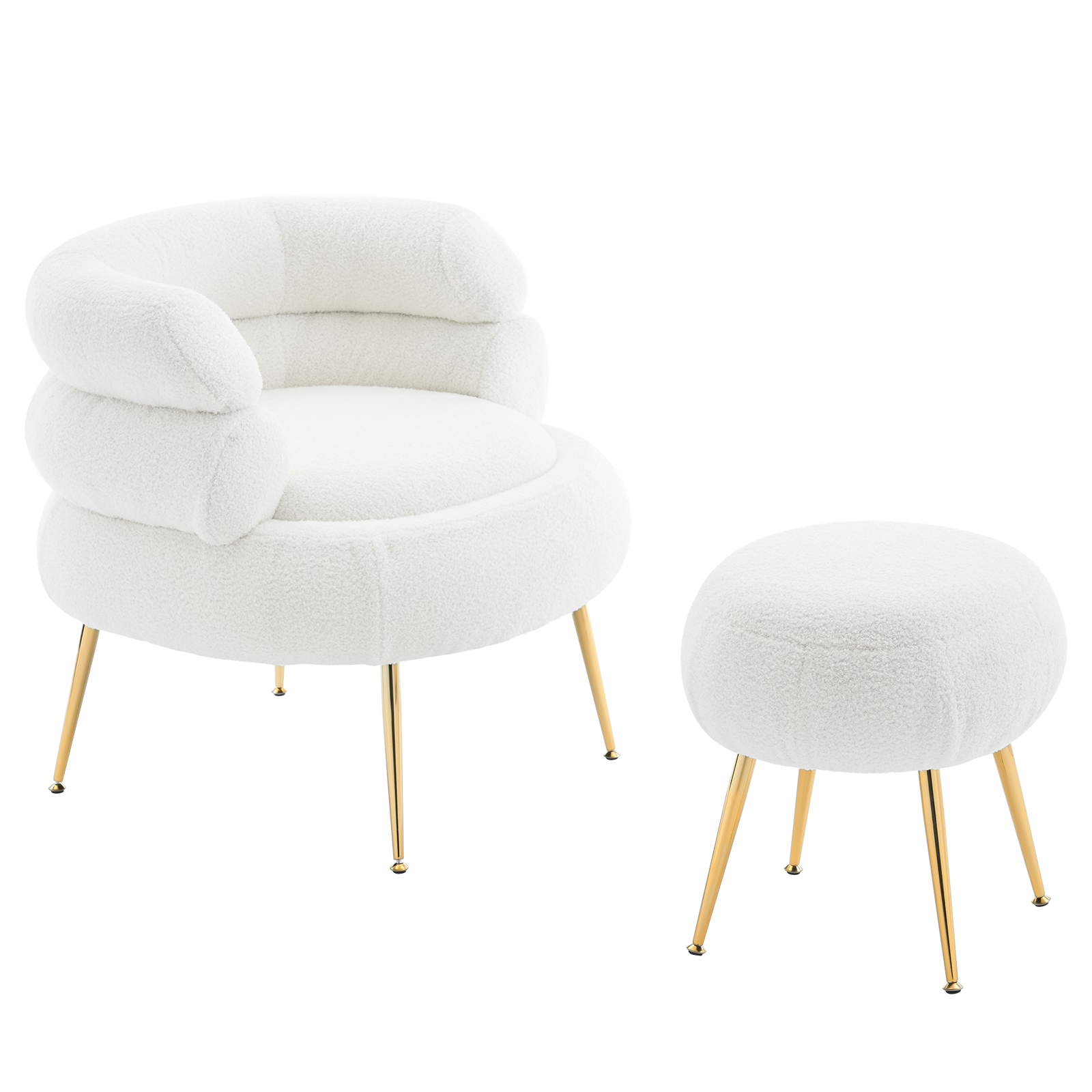 Ktaxon Modern Leisure Chair with Ottoman, Accent Chair with Armrests, Teddy Velvet Club Chair and Footstool Set for Living Room, Bedroom, Office Teddy White