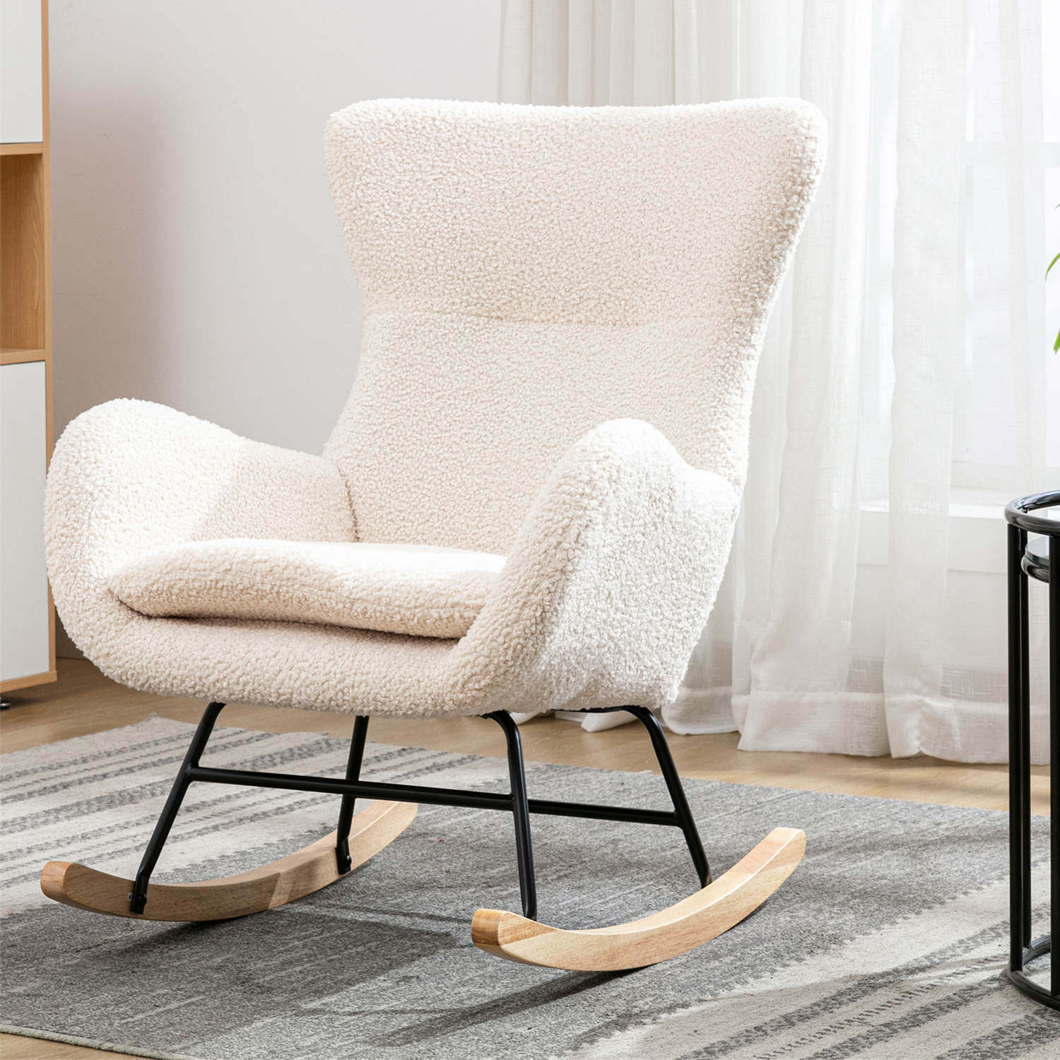 Tzicr Small Rocking Accent Chair with High Backrest and Armrests, Teddy Velvet Upholstered Baby Rocking Chair for Baby Nursery,Living Room,Bedroom (Beige)