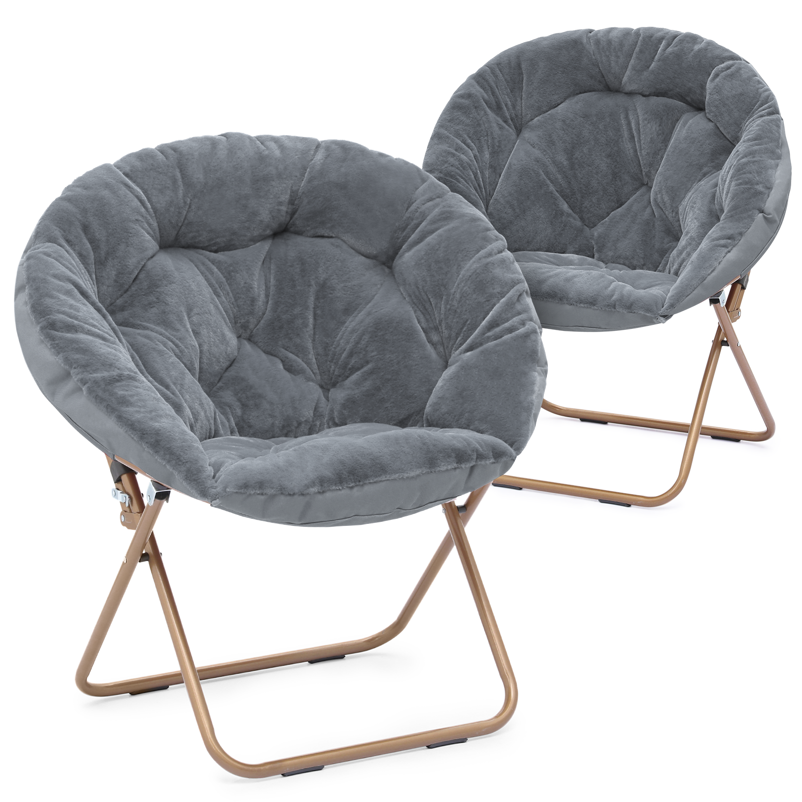 MoNiBloom 2 Pieces 33" Round Foldable Saucer Chair, Soft Faux Fur Oversized Folding Accent Chair Lounge Moon Chair with Metal Frame for Bedroom, Gray