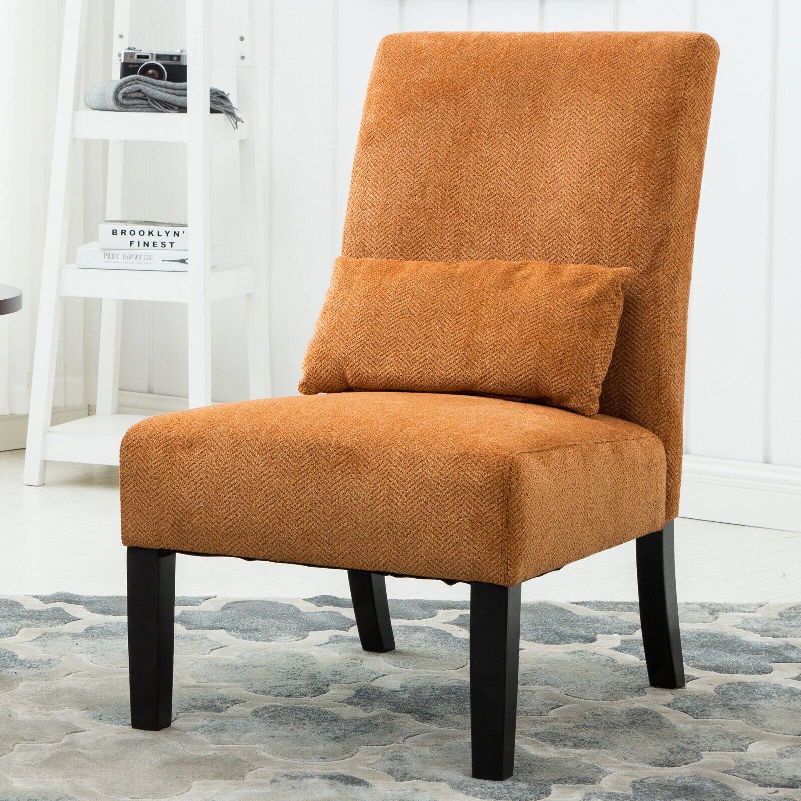 Roundhill Pisano Fabric Armless Contemporary Accent Chair with Kidney Pillow, Multiple Colors Available