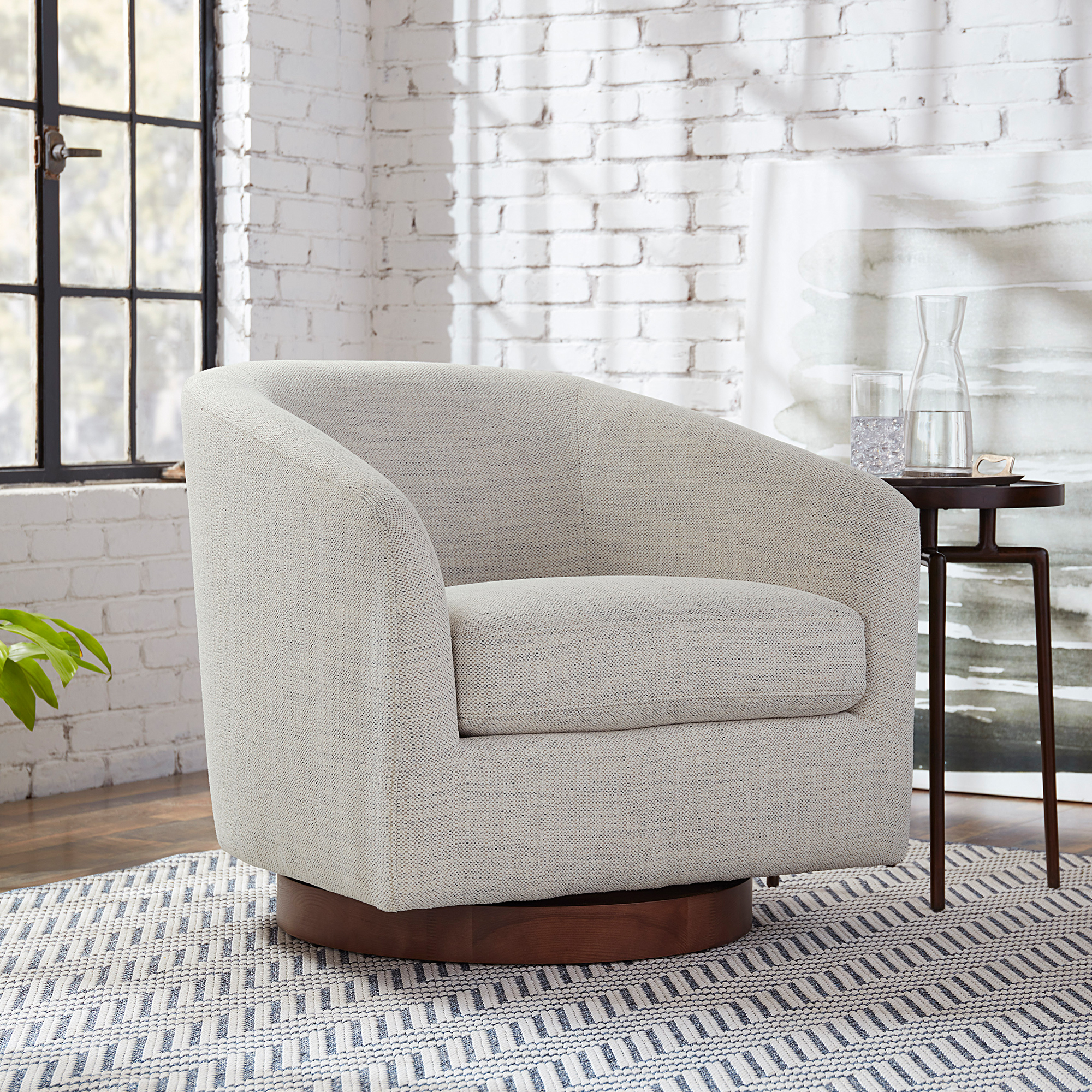 CHITA Swivel Accent Chair Fabric, Round Barrel Arm Chair Living Room, Ivory White
