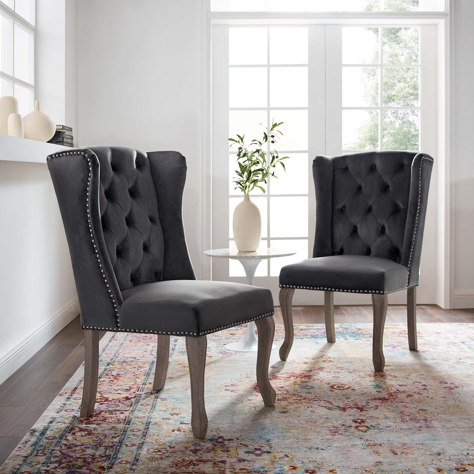Modway Apprise Side Chair Performance Velvet Set of 2 in Gray