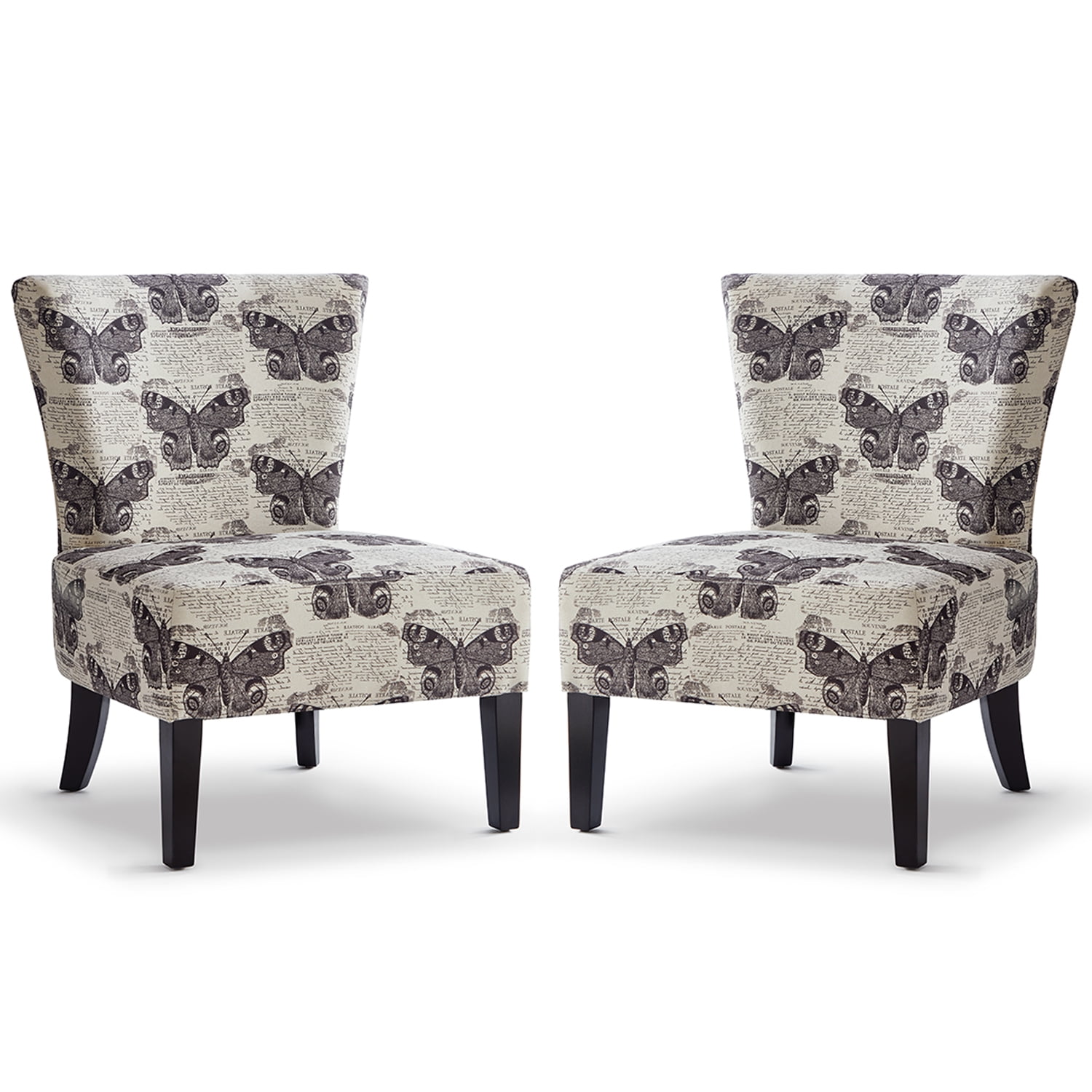 GEXPUSM Armless Accent Chair Set of 2, Modern Living Room Chairs with Thick Cushion & Solid Wood Legs, Fabric Comfy Bedroom Chair, Living Room Furniture, Gray/Butterfly motif