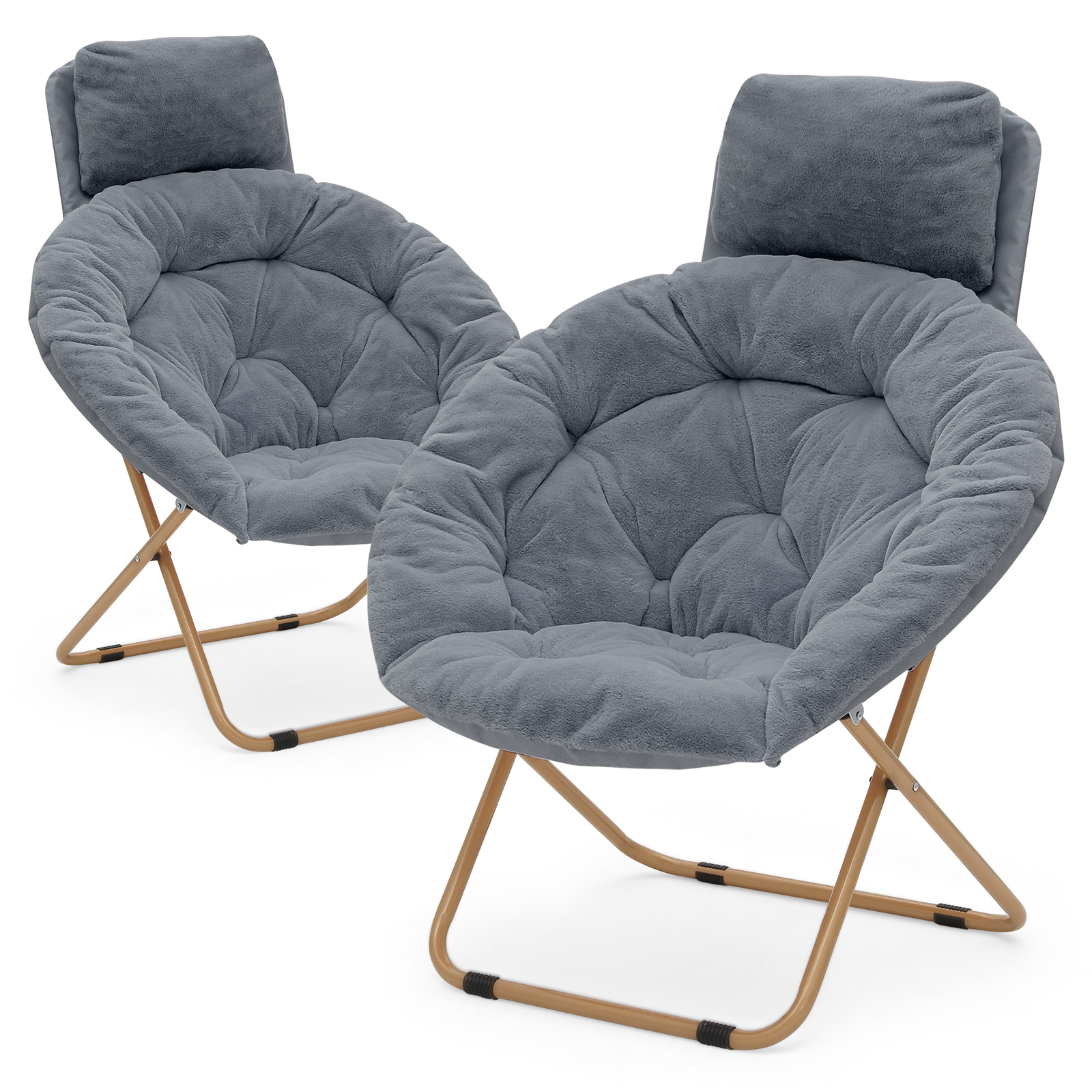 Magshion Set of 2 Saucer Chairs with Pillow, Faux Fur Folding Accent Chairs with Metal Frame, Moon Chair for Bedroom Living Room, Gray