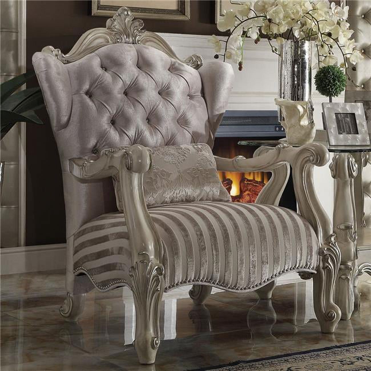ACME Versailles Chair with 1 Pillow, Ivory Velvet & Bone White - 47 x 33 x 36 in.
