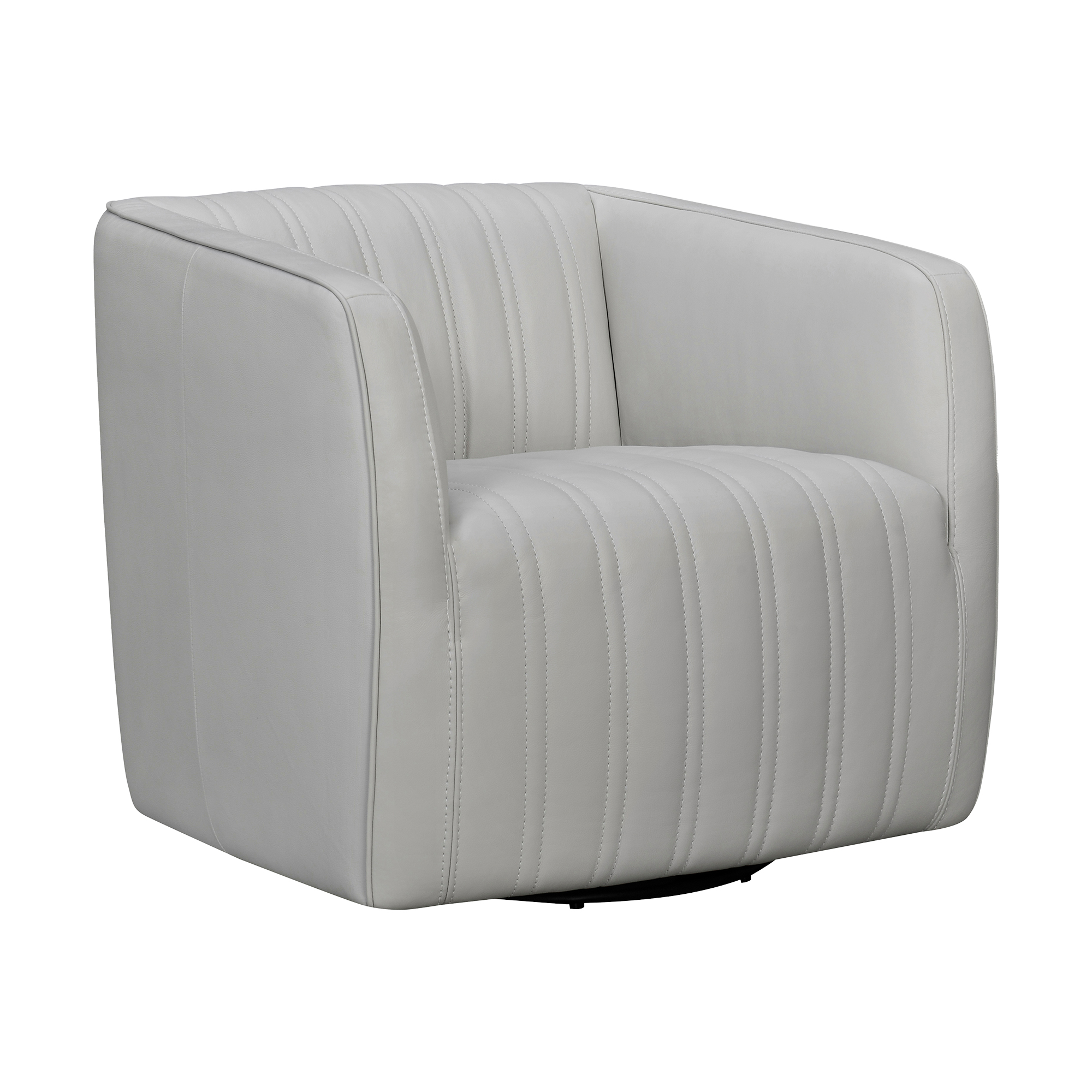 Armen Living Aries 17" Modern Genuine Leather Swivel Barrel Chair in Dove Gray