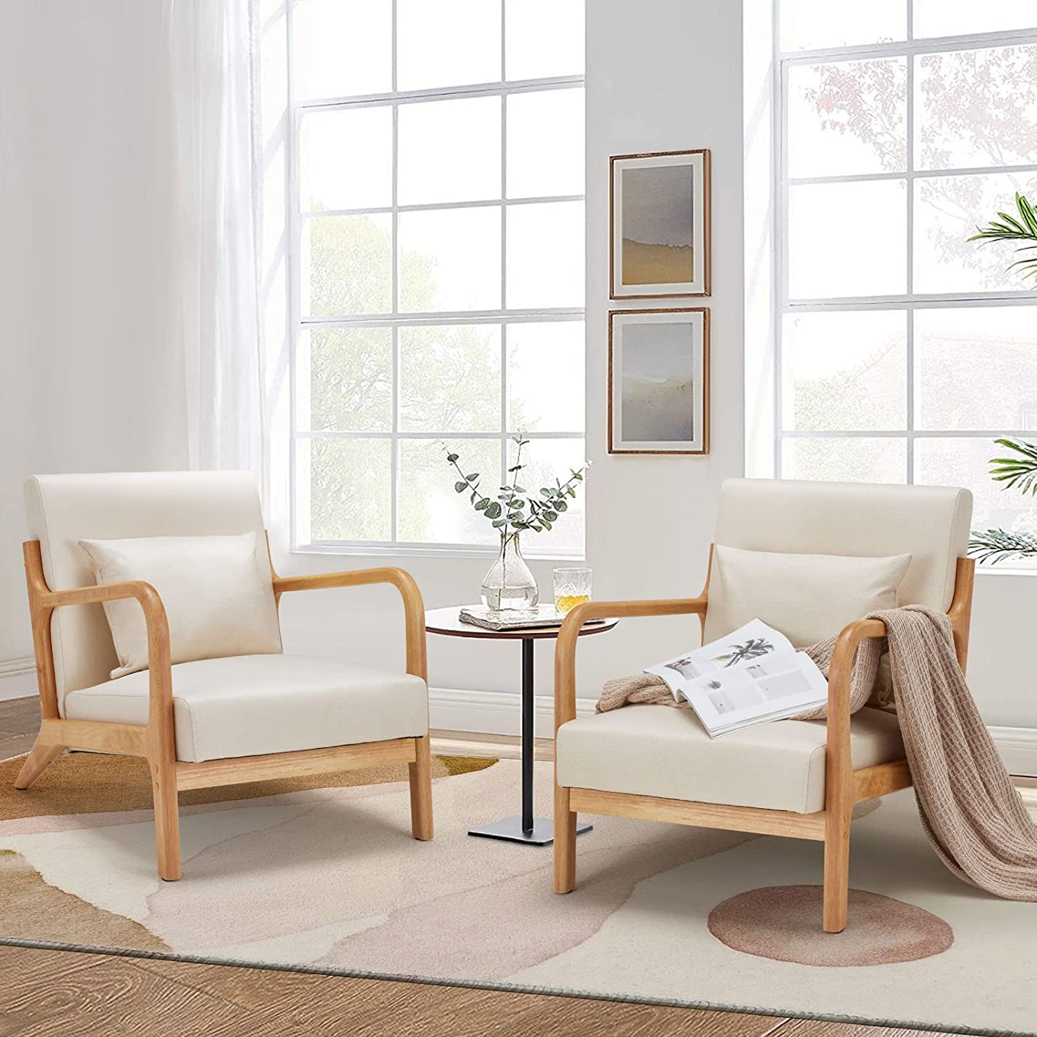 YODOLLA Fabric Accent Chair Mid-Century Modern Upholstered Arm Chair Set of 2 for Living Room in White